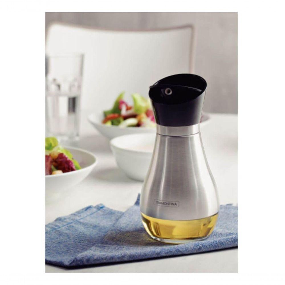 Galheteiro Tramontina Realce 0,39 LitrosO galheteiro Tramontina Realce 0,39 litros é indispensável para quem não abre mão de ter a mesa itens que vão incrementar suas refeições e dar a elas muito mais sabor. Perfeito para ser utilizado tanto com vinagre quanto azeite, ele tem tampa giratória com sistema corta gotas e possui um design supermoderno. Além de todas essas características, ele é altamente durável e vai garantir muito mais praticidade para sua mesa!Recomendações de Uso:Modo de Uso: Use apenas sabão ou detergente e uma esponja macia. Outros tipos de produto como palha de aço, poderão riscar ou prejudicar o brilho das peças. Enxágue cada item a fim de remover totalmente os resíduos dos produtos de limpeza, que, por serem abrasivos, podem danificar o inox. Sempre que possível, use água quente, pois renova o brilho das peças. Após a lavagem, enxugue imediatamente as peças, caso contrário, as substâncias químicas da água (cloro) poderão causar manchas. Evite atrito entre as peças durante o processo de lavagem e no armazenamento, para mantê-las sem riscos. Evite o do produto com superfícies quentes, pois elas provocam a descoloração do material. Não guarde as peças em locais úmidos. A umidade também provoca manchas.Informações Adicionais:- Ideal para ir à mesa;- Recipiente em vidro revestido em aço inox;- Tampa giratória em polipropileno, com bico dosador e sistema corta-gotas.- Foto meramente ilustrativa.