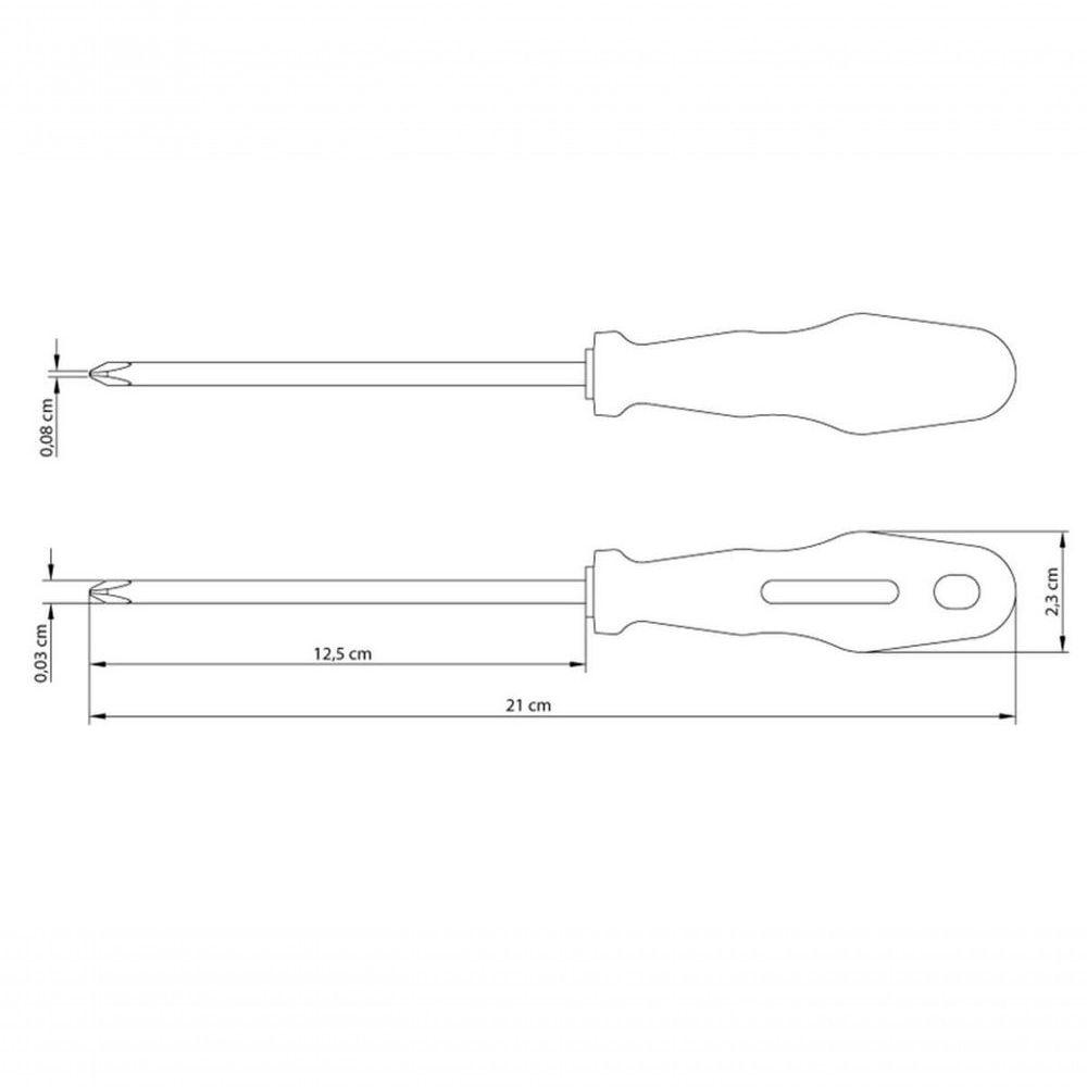 Chave De Fenda Tramontina Master Yellow 1/8x5" Com Ponta Cruzada No dia a dia, é essencial contar com uma chave de fenda segura e resistente. Para parafusos de ponta cruzada, a Chave de Fenda Tramontina MASTER Yellow com Ponta Cruzada 1/8x5 Polegadas é a escolha certa. Produzida em aço especial temperado, oferece resistência e durabilidade, enquanto seu cabo em polipropileno injetado garante manuseio confortável e preciso. Com essa ferramenta, apertar ou afrouxar parafusos se torna muito mais fácil e eficiente.Recomendações de Uso:Modo de uso: ;Use óculos, luvas e outros equipamentos de proteção de acordo com a tarefa a ser executada. Utilize chaves de fenda isoladas, identificadas pela marcação V, quando for necessário trabalhar em locais com corrente elétrica. Importante: nestes casos, inspecione a integridade da isolação elétrica, e, se aparecerem trincas na isolação, suspenda o uso imediatamente. Utilize chaves com ponta adequada para cada tipo de fenda, para realizar a tarefa de forma mais rápida e segura. Respeite o torque estabelecido por norma para cada bitola. Não utilize as chaves de fenda como formão ou alavanca. Não altere as dimensões da ponta para obter outro perfil. Armazene em limpo e seco.- Foto meramente ilustrativa.Informações Adicionais:- Ponta cruzada;- Acabamento niquelado;- Haste em aço especial temperado; ;- Cabos injetados com material de alta resistência;- As ferramentas são produzidas e testadas conforme normas específicas;- Os dimensionais das pontas são verificados comgabaritos-padrão, calibrados e certificados;- As hastes das chaves de fenda são testadas em máquinas de ensaio específicas, para verificar o perfeito balanço entre resistência mecânica e dureza.