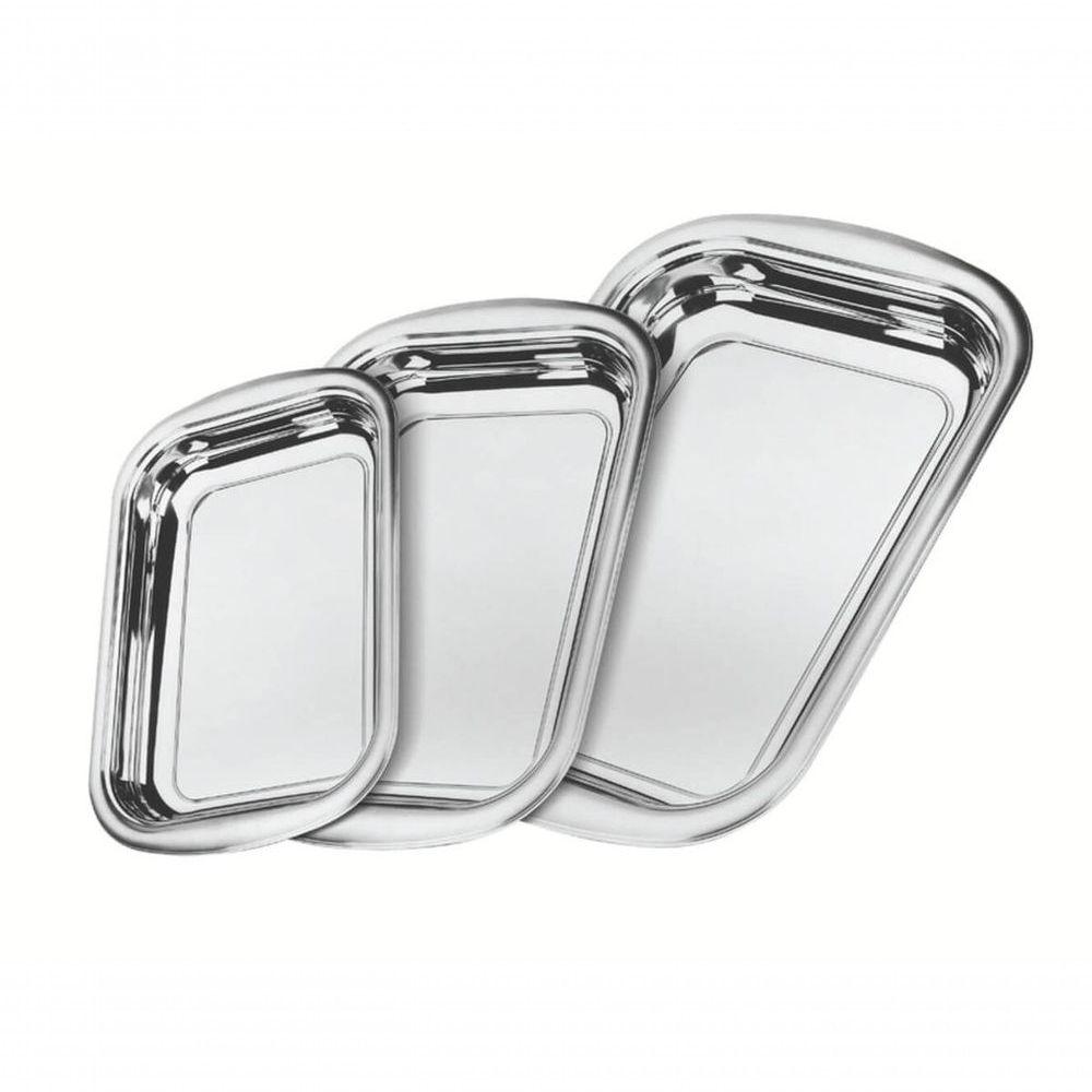 Jogo De Assadeiras Tramontina Cosmos Aço Inox 3 PeçasUma mesa bem-posta é um presente que todo mundo pode se dar todos os dias. Talheres e acessórios brilhantes, uma toalha bonita e pequenos toques de decoração tornam qualquer momento mais especial. Afinal, uma boa refeição deve ser saboreada também com os olhos.Recomendações de Uso:Modo de uso: Use apenas sabão ou detergente e uma esponja macia. Outros tipos de produto como palha de aço, poderão riscar ou prejudicar o brilho das peçágue cada item a fim de remover totalmente os resíduos dos produtos de limpeza, que, por serem abrasivos, podem danificar o que possível, use água quente, pois renova o brilho das peçós o uso: Após a lavagem, enxugue imediatamente as peças, caso contrário, as substâncias químicas da água (cloro) poderão causar manchas. Evite atrito entre as peças durante o processo de lavagem e no armazenamento, para mantê-las sem riscos. Evite o do produto com superfícies quentes, pois elas provocam a descoloração do material. Não guarde as peças em locais úmidos. A umidade também provoca manchas.Informações Adicionais:- Peças totalmente feitas de aço inox, mantêm suas características , preservando a beleza, a higiene e a durabilidade do material- Acabamento em brilho- Design moderno Proporciona requinte ao compor a Mesa- Ideal para assar e servir- Podem ser lavadas diariamente Na máquina de lavar louças