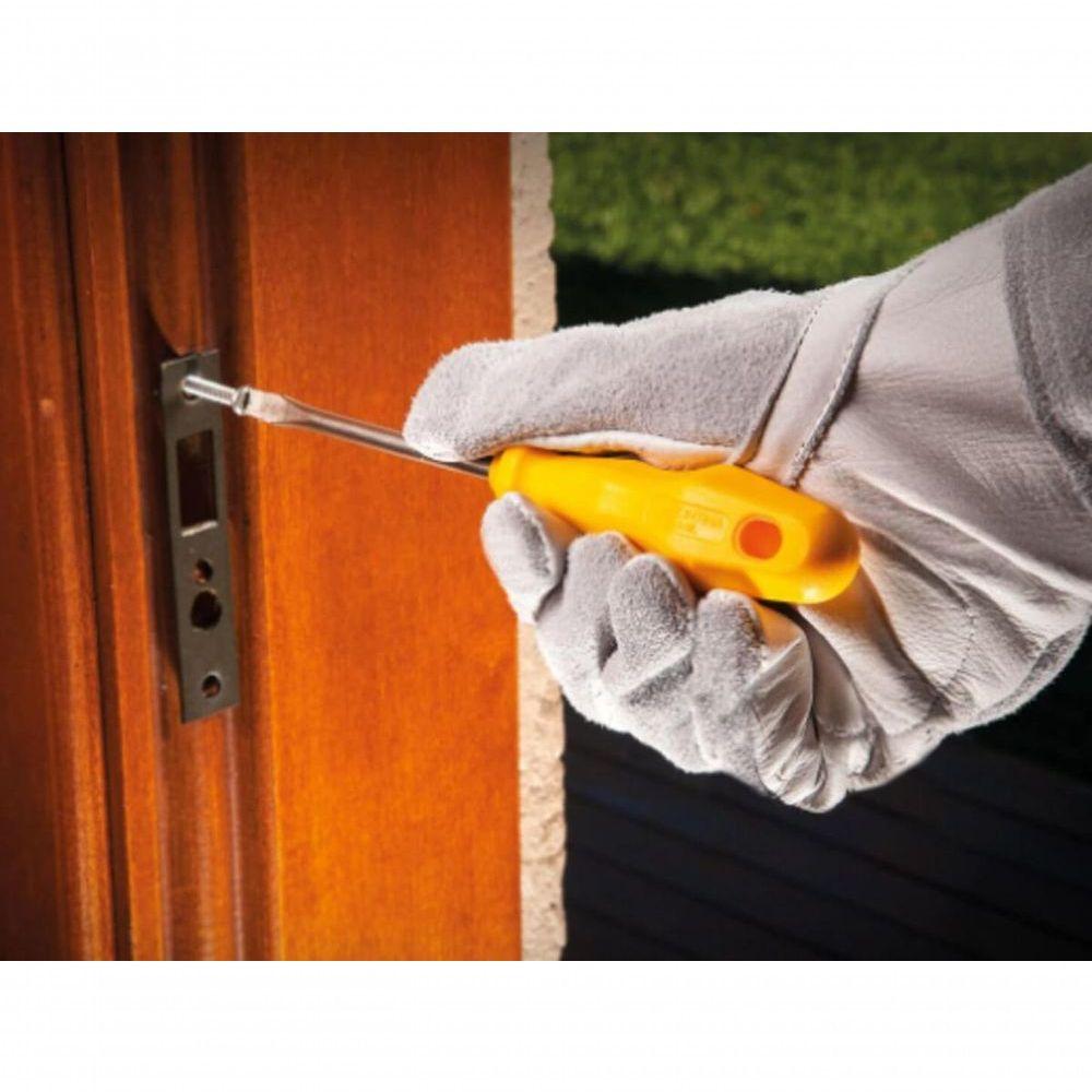 Chave De Fenda Tramontina Master Yellow Com Ponta Chata 1/8x3"Investir continuamente na atualização tecnológica dos meios de produção, na expansão das áreas industriais e no conhecimento é prioridade na Tramontina. Ferramenta indispensável para se ter em casa ou na sua maleta de trabalho, a Chave de Fenda Ponta Chata Yellow vai te garantir muita e precisão nas suas tarefas e deixar o trabalho de apertar ou afrouxar parafusos muito mais fácil.Recomendações de Uso:Modo de uso: Use óculos, luvas e outros equipamentos de proteção de acordo com a tarefa a ser executada. Utilize chave de fenda isolada, identificada pela marcação V, quando for necessário trabalhar em locais com corrente elétrica. Importante: nestes casos, inspecione a integridade da isolação elétrica, e, se aparecerem trincas na isolação, suspenda o uso imediatamente. Utilize chave com ponta adequada para cada tipo de fenda, para realizar a tarefa de forma mais rápida e segura. Respeite o torque estabelecido por norma para cada bitola. Não utilize a chave de fenda como formão ou alavanca. Não altere as dimensões da ponta para obter outro perfil. Armazene em limpo e seco.- Foto meramente ilustrativa.Informações Adicionais:- Acabamento niquelado;- Haste em aço especial temperado;- Cabo injetado com material de alta resistência;- A ferramenta é produzida e testada conforme normas específicas;- Os dimensionais da ponta são verificados com gabaritos-padrão, calibrados e certificados;- A haste da chave de fenda é testada em máquinas de ensaio específicas, para verificar o perfeito balanço entre resistência mecânica e dureza.