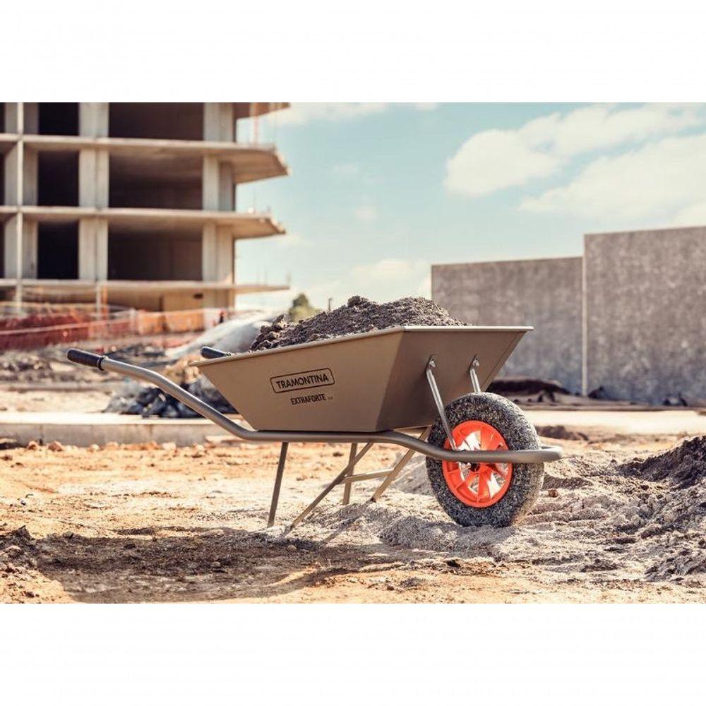 Carrinho De Mão Extraforte Tramontina Pneu Maciço Caçamba Metálica Cinza 65 Litros materiais de construção com mais praticidade usando o carrinho de mão extraforte Tramontina com caçamba metálica cinza de 65 L, braço metálico e pneu maciço. Sua caçamba conta com reforço especial, garantindo resistência extra para suportar até 65 litros de carga. O braço metálico e o pneu maciço oferecem maior estabilidade e eficiência no manuseio, tornando o muito mais e ágil. Um item robusto, com a qualidade e durabilidade que só a Tramontina oferece.Recomendações de Uso:Modo de uso: Direcionado para uso geral, principalmente para a construção civil, no de ferramentas e materiais diversos, como terra, areia, argamassa e entulhos. ;Para descarte dos produtos e embalagens siga as orientações de reciclagem vigentes.- Foto meramente ilustrativa.Informações Adicionais:- Borda reforçada;- Empunhaduras ergonômicas;- Eixo em aço de alta resistência;- Pneu maciço Ø 345 mm x 75 mm;- Braço metálico tubular de 1,5 mm; ;- Caçamba metálica reforçada de 0,9 mm [chapa 20], com capacidade para 65 L;- Possui propriedades especiais de estampagem, tornando as caçambas mais resistentes e duráveis;- Acabamento com pintura eletrostática a pó, que tem uma melhor apresentação visual e maior proteção contra oxidação;- Os carrinhos de mão Tramontina são fabricados através de processos altamente tecnológicos, que garantem alta resistência, excelente qualidade e bom acabamento aos produtos.
