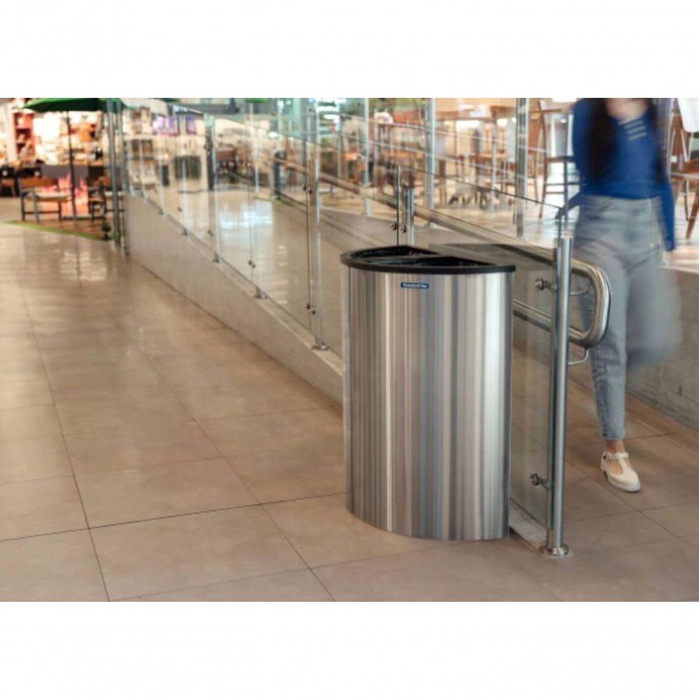 Lixeira Tramontina Abruzzo Aço Inox Com Acabamento Acetinado 110 LitrosAmbientes institucionais pedem soluções duráveis e com acabamento de qualidade, e a lixeira Tramontina Abruzzo em aço inox com 110 litros atende a essas exigências com eficiência e sofisticação. Com design moderno e acabamento acetinado, ela é produzida em aço inox AISI 430 e conta com aro em aço carbono com pintura eletrostática, combinação que proporciona alta resistência e ótima durabilidade mesmo em locais de uso intenso ou expostos às variações climáticas. Sua grande capacidade é ideal para espaços empresariais, facilitando a organização e contribuindo para a limpeza constante do ambiente. Um produto robusto e funcional, perfeito para manter áreas institucionais mais limpas, bem-cuidadas e com um visual .Recomendações de Uso:Modo de Uso: Produto para uso interno. Para a limpeza, lavar com uma esponja macia e detergente neutro. Nunca deixar objetos metálicos por muito tempo em com a lixeira, para evitar a corrosão. Evitar o com ácido muriático, água sanitária ou qualquer outro solvente que possa vir a agredir o produto. Para manter o brilho da sua lixeira, recomenda-se o uso da pasta para polir e remover manchas em superfícies de aço inoxidável "Tramontina". Não utilizar para limpeza, palha de aço inox ou outros elementos ou produtos que possam riscar o aço inox.- Foto meramente ilustrativa.Informações Adicionais:- Tampa: Não;- Capacidade: 110 L;- Espessura: 0,6 mm;- Balde plástico: Não;- Tratamento antidigitais: Não;- Pegador para : Não;- Saco de lixo recomendado: 200 L;- Material (corpo): Aço Inox AISI 430;- Acompanha adesivos de coleta seletiva;- Aramado interno para fixação do saco de lixo: Sim;- Material (interior): Aço carbono com pintura eletrostática a pó preto fosco.