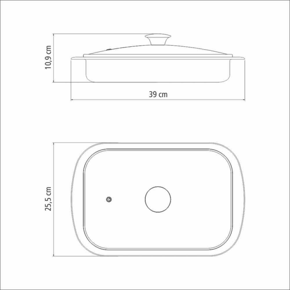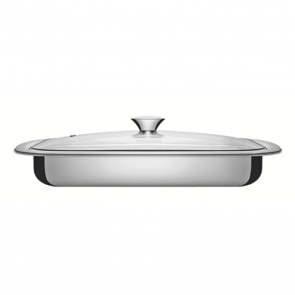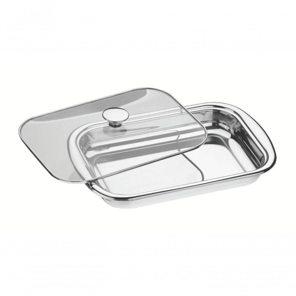 Assadeira Retangular Tramontina Cosmos 39cm Em Aço Inox Com Tampa De Vidro