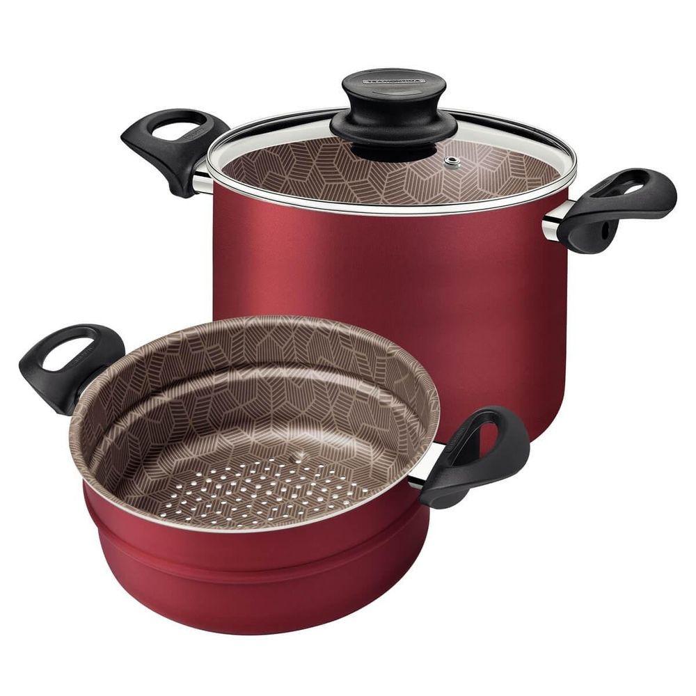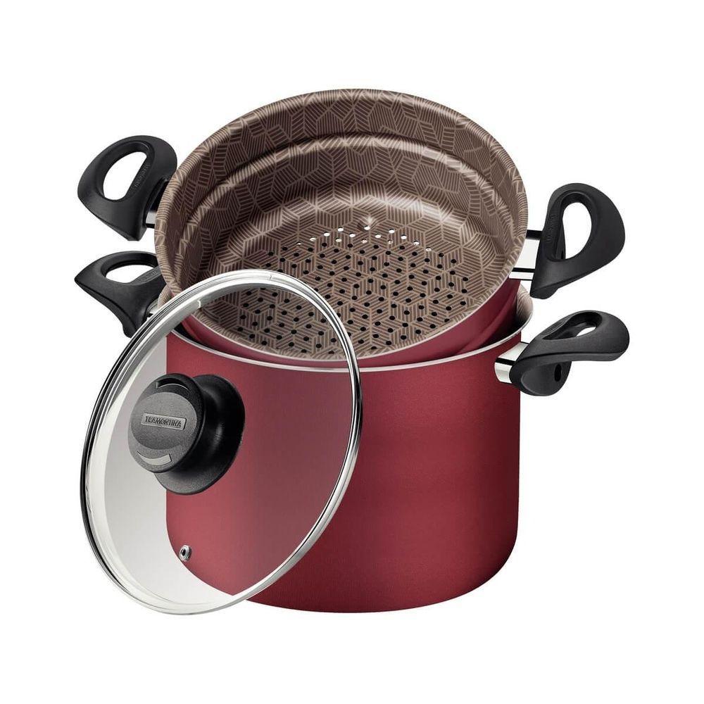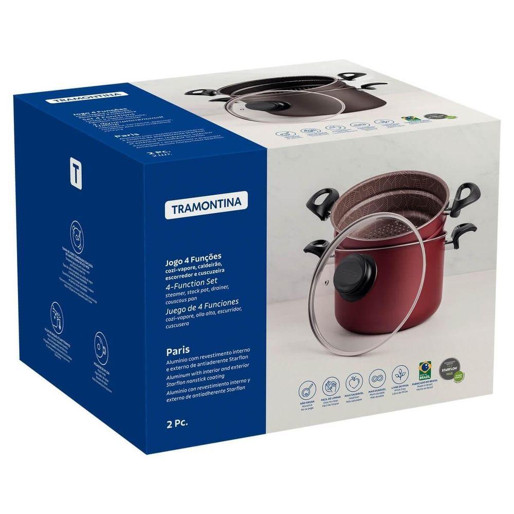 Conjunto 4 Funções Tramontina Paris Em Alumínio Com Revestimento Antiaderente Vermelho E Tampa De Vidro