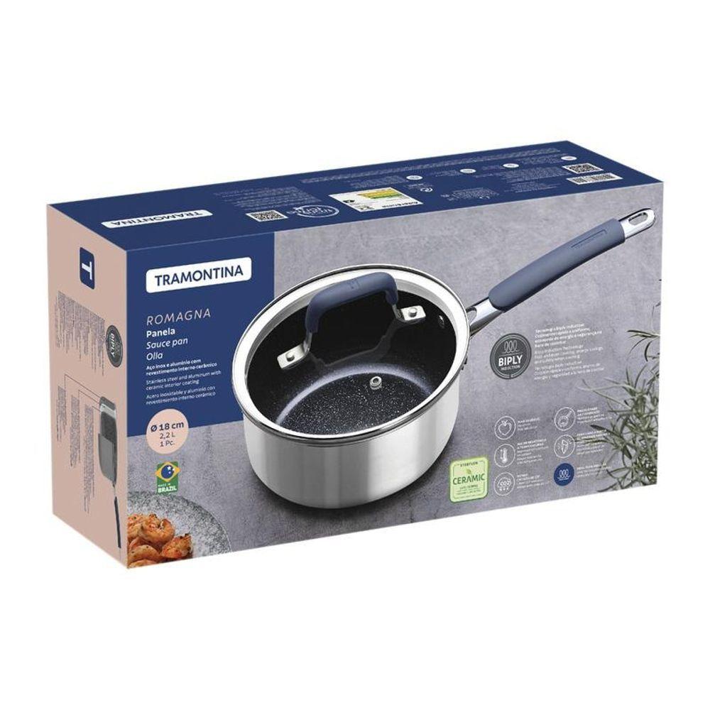 Panela Tramontina Romagna Aço Inox E Alumínio 18cm Com Revestimento Cerâmico Black Stone