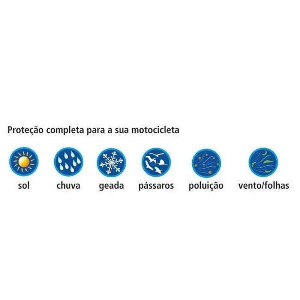 Capa Impermeável Para Moto Tramontina Tamanho GProteger motos do sol, chuva, geada, sujeiras provenientes de poluição, pássaros e folhas, este é o objetivo das capas impermeáveis da Tramontina. O cuidado que sua moto merece.Recomendações de Uso:Modo de uso: nunca aproxime a capa de materiais cortantes. Armazene em local limpo e seco. Mantenha fora do alcance das crianças.- Foto meramente ilustrativa.Informações Adicionais:- Produzida com poliéster de alta qualidade.- Confeccionada com costura dupla.- Cinta para envolver a motocicleta.- Reflete os raios solares.- 100% impermeável.- Elástico resistente nas extremidades.- Cinta para envolver a moto, proporciona maior segurança na fixação e assegurando que a capa não seja levada pelo vento.- Ideal para motos de até 2,20 metros.- Ideal para proteção contra sol, chuva, geada, pássaros, poluição, vento e folhas.- Produzida em material leve de alta resistência podendo ser facilmente colocada e removida.- Possui caixa litografada para facilitar o armazenamento.