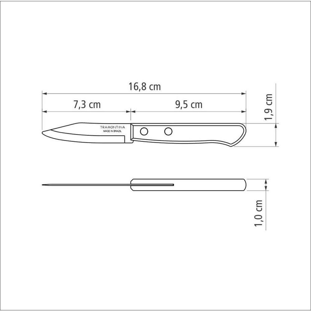 Faca Para Legumes Tramontina Polywood Vermelho 3Com a Faca para Legumes e Frutas Tramontina Polywood com Lâmina em Aço Inox e Cabo de Madeira Vermelho 3 polegadas da Linha Polywood você tem ainda mais liberdade na sua cozinha. Indicada para cortar, descascar e fazer cortes delicados em legumes e frutas, a faca é produzida com lâmina em aço inox, garantindo resistencia e durabilidade. E seu cabo de madeira Tratado Polywood é resistente à impactos, altas temperaturas e, ainda, pode ir a máquina de lavar louças. As facas Tramontina possibilita um manuseio mais confortável e , sem perder o design elegante!Recomendações de Uso:Antes do uso: Antes de utilizar o , remova as eventuais etiquetas e lave-o com água e de uso: Durante a lavagem use somente esponja macia, outros tipos de produtos, como palha de aço, poderão riscar ou prejudicar o brilho do aço inox. Enxágue bem a peça a fim de remover totalmente os resíduos dos produtos de limpeza, que por serem abrasivos, podem danificar o inox. Após a lavagem enxugue a peça, pois as substâncias químicas contidas na água poderão causar manchas. Sempre que possível use água quente, pois renova o brilho do talher. Evite o das peças com superfícies quentes, pois podem provocar a descoloração do produto. Quando usar a máquina de lavar louça, recomendamos retirar o talher logo que tenha terminado o ciclo enxaguar, a fim de que os mesmos sejam secados manualmente.- Tenha cuidado ao Manusear produtos cortantes e perfurantes e mantenha-os fora do alcance de crianças.- Embalagem blister.- Foto meramente ilustrativa.Informações Adicionais:- Rebites de alumínio;- ;Cor do cabo ;em tons de Vermelho;- Tem cinco anos de garantia contra de fabricação;- Pode ir à máquina de lavar louças facilitando seu dia a dia;- Cabo de madeira tratada, resistente a impactos e altas temperaturas;- Lâmina de aço inox com maior durabilidade do fio devido ao tratamento térmico que recebe.