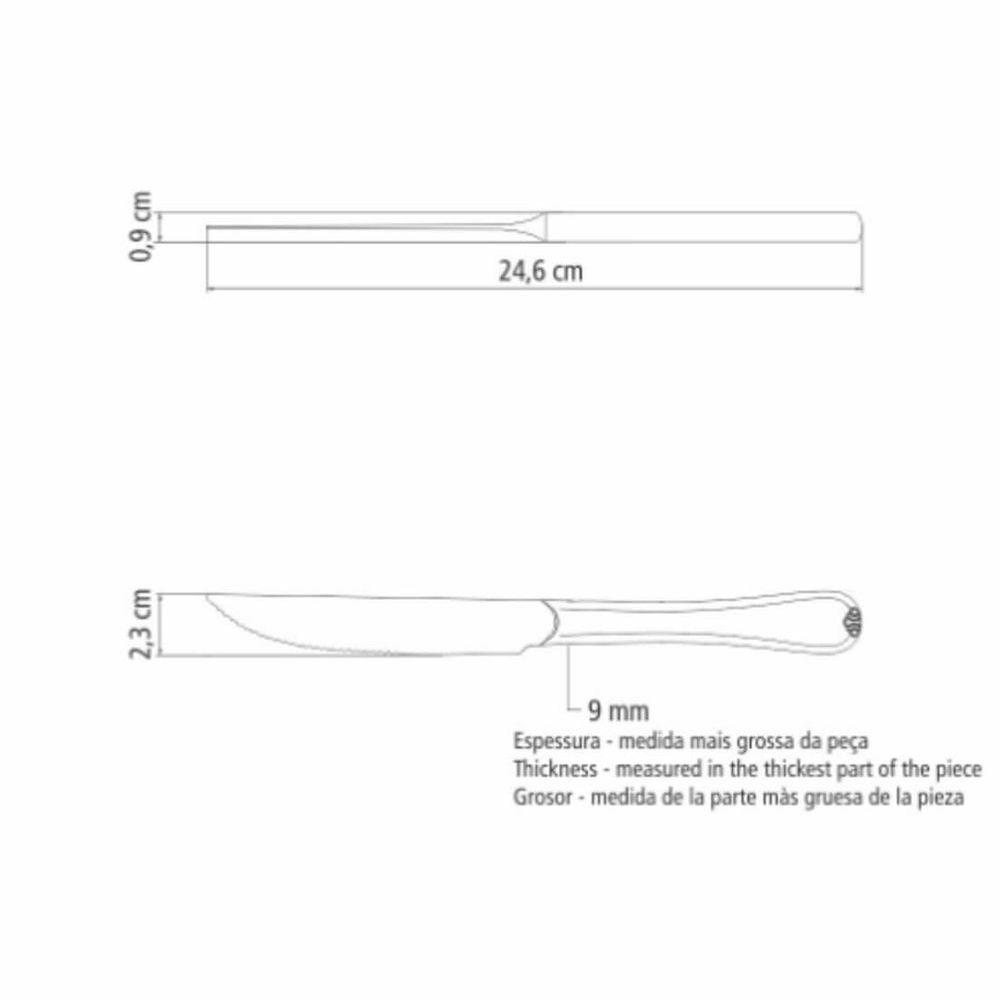 Faca Para Churrasco Tramontina Vicenza Forjada Em Aço InoxTotalmente feita de aço inox, altamente durável, mantém suas características , preservando a beleza, a higiene e a durabilidade do material.Recomendações de Uso:Modo de uso: Use apenas sabão ou detergente e uma esponja macia. Outros tipos de produtos, como palha de aço, poderão riscar ou prejudicar o brilho dos talheres. Enxágue bem cada peça a fim de remover totalmente os resíduos dos produtos de limpeza, que, por serem abrasivos, podem atacar o inox. Sempre que possível, use água quente, pois renova o brilho do talher. Após a lavagem, enxugue imediatamente os talheres, caso contrário, as substâncias químicas da água (cloro) poderão causar manchas. Evite atrito entre os talheres durante o processo de lavagem e no armazenamento, para mantê-los sem riscos. Evite o das peças com superfícies quentes. Elas provocam a descoloração do produto. Não guarde os talheres em locais úmidos. A umidade também provoca manchas.Qualquer faca, independentemente de marca, para manter o fio de corte, é fabricada em aço com maior teor de carbono e, por isso, é menos resistente à corrosão. Assim, pedimos uma atenção especial para este artigo, pois estará mais propenso aos problemas máquina de lavar louças: Não carregue em demasia a cesta dos talheres. Separe bem as peças, pois o permanente entre as mesmas, durante a secagem, poderá causar manchas. Retire os talheres logo que tenha terminado o ciclo enxaguar, a fim de que os mesmos sejam secados manualmente.- Foto meramente ilustrativa.Informações Adicionais:- Totalmente feita de aço inox, altamente durável, mantém suas características , preservando a beleza, a higiene e a durabilidade do material. - Faca totalmente temperada, que garantem maior durabilidade no fio de corte e maior resistência à corrosão, e por suas características de temperabilidade, não risca as porcelanas. - O cabo da faca se adapta melhor a palma da mão.- Possui equilíbrio harmônico entre o cabo e a lâmina. - Acabamento em alto brilho, com detalhes no cabo. - Pode ser lavada diariamente na máquina de lavar louças.