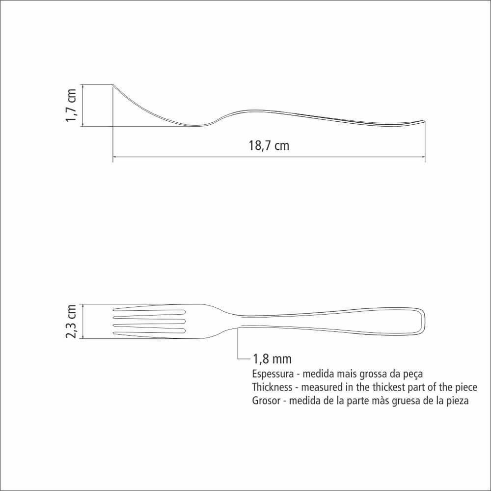 Garfo De Mesa Tramontina Maresias Em Aço InoxO Garfo de Mesa Tramontina Maresias em Aço Inox é perfeito para as refeições diárias, isso porque proporciona conforto na sua utilização, já que possui dentes polidos na parte interna e bordas arredondadas, além de ser totalmente produzido em aço inox e poder ser levado ao lava-louças diariamente.Recomendações de Uso:Antes do uso: Antes de utilizar o , remova as eventuais etiquetas e lave-o com água quente e detergente.Modo de uso:Durante a lavagem use somente esponja macia, outros tipos de produtos, como palha de aço, poderão riscar ou prejudicar o brilho dos talheres. Enxágue bem cada peça a fim de remover totalmente os resíduos dos produtos de limpeza, que por serem abrasivos, podem danificar o inox. Após a lavagem enxugue os talheres, pois as substâncias químicas contidas na água poderão causar manchas. Sempre que possível use água quente, pois renova o brilho dos talheres. Evite o das peças com superfícies quentes, pois podem provocar a descoloração do produto. Quando usar a máquina de lavar louça, recomendamos retirar os talheres logo que tenha terminado o ciclo enxaguar, a fim de que os mesmos sejam secados manualmente.- Foto meramente ilustrativa.Informações Adicionais:- Acabamento em brilho;- Totalmente feito de aço inox;- Garfo com dentes polidos na parte interna;- Pode ser lavado diariamente na máquina de lavar louças.