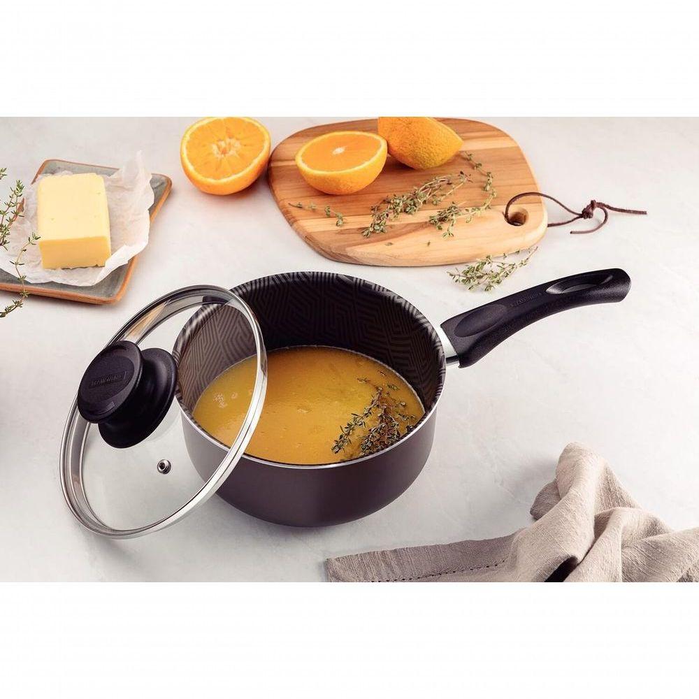 Panela Tramontina Paris 18cm Em Alumínio Com Revestimento Antiaderente Chumbo E Tampa De Vidro