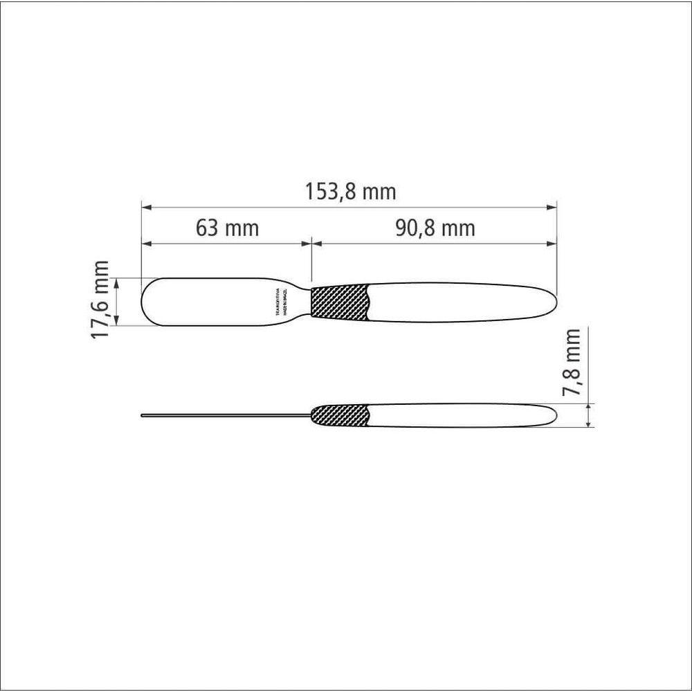 Espátula Para Tramontina Ipanema 2" VermelhaPara um café da manhã especial, conte com a Espátula para Tramontina Ipanema com Lâmina em Aço Inox e Cabo de Polipropileno Vermelho 2 polegadas! Produzida com lâmina em aço inox e cabo de polipropileno, ela é perfeita para uso diário, pois é resistente e durável. Sua limpeza é super fácil e pode ainda ser levada à máquina de lavar louças, facilitando sua rotina na cozinha. Além de todas essas características, ela ainda deixa sua mesa muito mais bonita e convidativa, pois vem na vibrante cor vermelha. Com a Tramontina, você tem os melhores itens para sua casa e para seu dia a dia!Recomendações de Uso:Antes do Uso: Lave bem as peças e seque-as.Modo de Uso: Tenha cuidado ao manusear produtos cortantes e perfurantes e mantenha-os fora do alcance das crianças. Para maior durabilidade dos produtos recomenda-se secar bem antes de guardar, mesmo após lavagem em máquina. Para descarte dos produtos e embalagens siga as orientações de reciclagem vigentes.Informações Adicionais:- Pode ir à máquina de lavar louças facilitando seu dia a dia;- O cabo de polipropileno possui maior resistência e durabilidade;- A lâmina de aço inox tem maior durabilidade devido ao tratamento térmico.- Foto meramente ilustrativa.