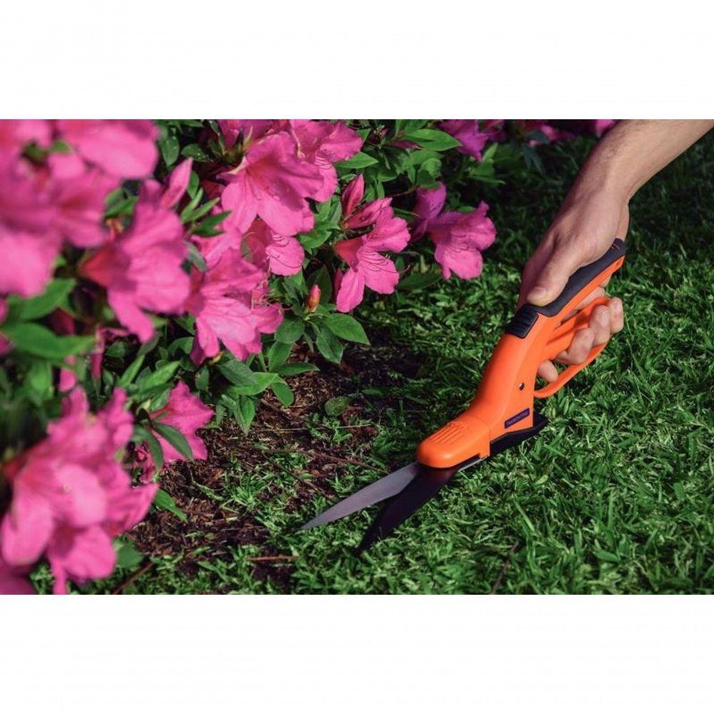 Tesoura Para Grama Tramontina Em Aço Com Cabo Plástico GiratórioPara manter seu jardim ou gramado sempre bem aparado, a tesoura para grama Tramontina em aço com cabo plástico é a escolha certa. Projetada para alcançar aqueles cantinhos onde o cortador de grama não chega, ela garante cortes precisos e acabamento perfeito. Leve e de fácil manuseio, proporciona mais conforto e menos esforço durante o trabalho. Com esta ferramenta, seu jardim ficará impecável, cuidando de cada detalhe com eficiência e praticidade.Recomendações de Uso:Modo de uso: Própria para acabamentos de canteiros e para aparar as bordas do gramado. Conservar a ferramenta limpa, secando-a depois de lavá-la. Aplique fina camada de óleo sobre as lâminas e articulações. ;A lâmina é afiada, ; pode resultar em lesões. Manuseie com cuidado e mantenha fora de alcançe das crianças. ;Para descarte dos produtos e embalagens siga as orientações de reciclagem vigentes.- Foto meramente ilustrativa.Informações Adicionais:- Leve e prática no uso;- Lâminas fabricadas em aço carbono especial de alta qualidade;- Botão de trava que possibilita operar a tesoura com uma só mão;- Cabos em plástico leves e ergonômicos, proporcionando conforto durante o uso;- Base de apoio com regulagem de altura, proporcionando um corte uniforme da grama;- Cabo giratório em 360°, com 16 posições de corte que permitem fazer qualquer contorno;- Possui uma trava de para fechamento das lâminas quando a tesoura não está em uso;- A tesoura é temperada em todo o corpo da peça, proporcionando maior resistência e menor desgaste durante o uso.