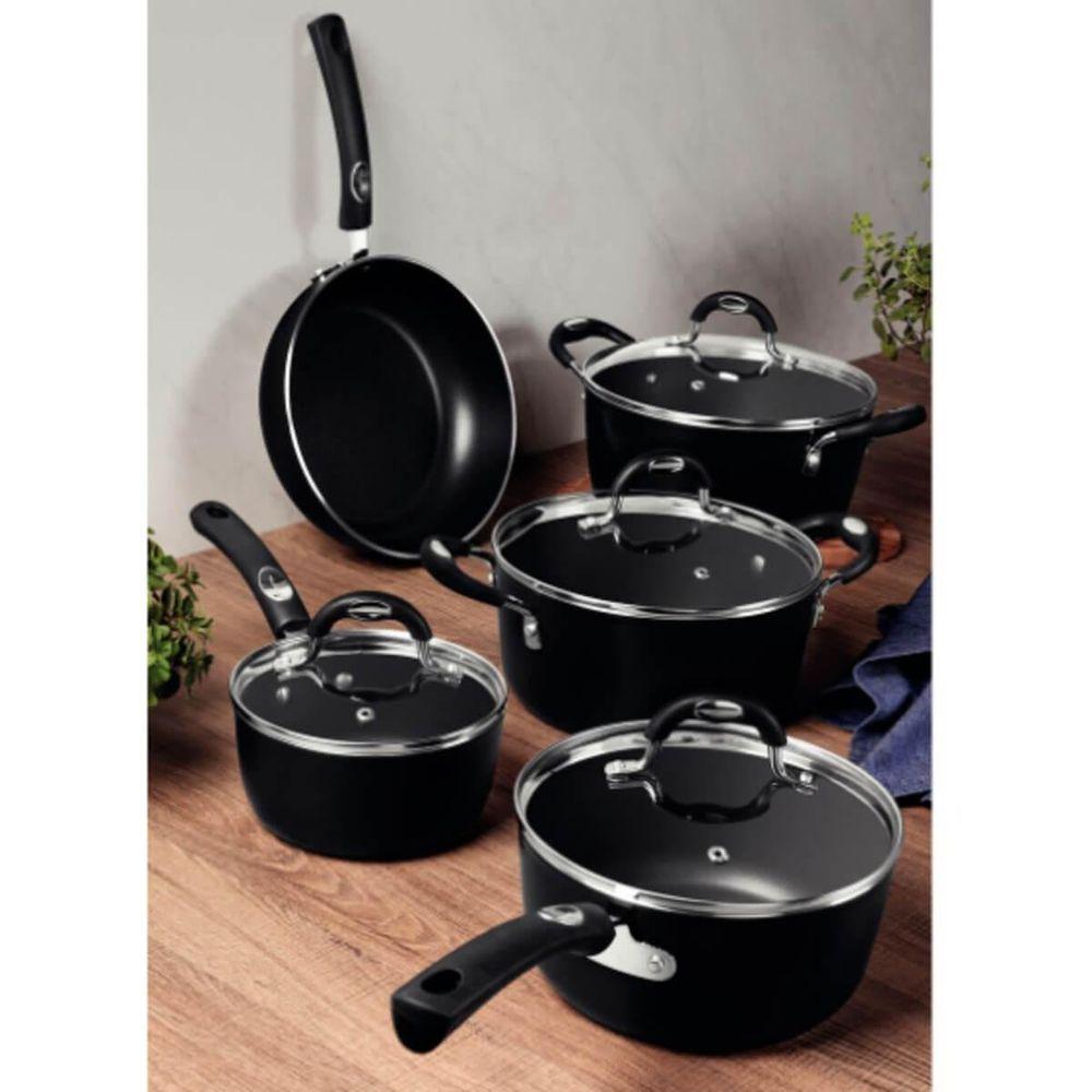 Jogo De Panelas Tramontina Mônaco Em Alumínio Revestimento Starflon Premium Preto 05 Peças