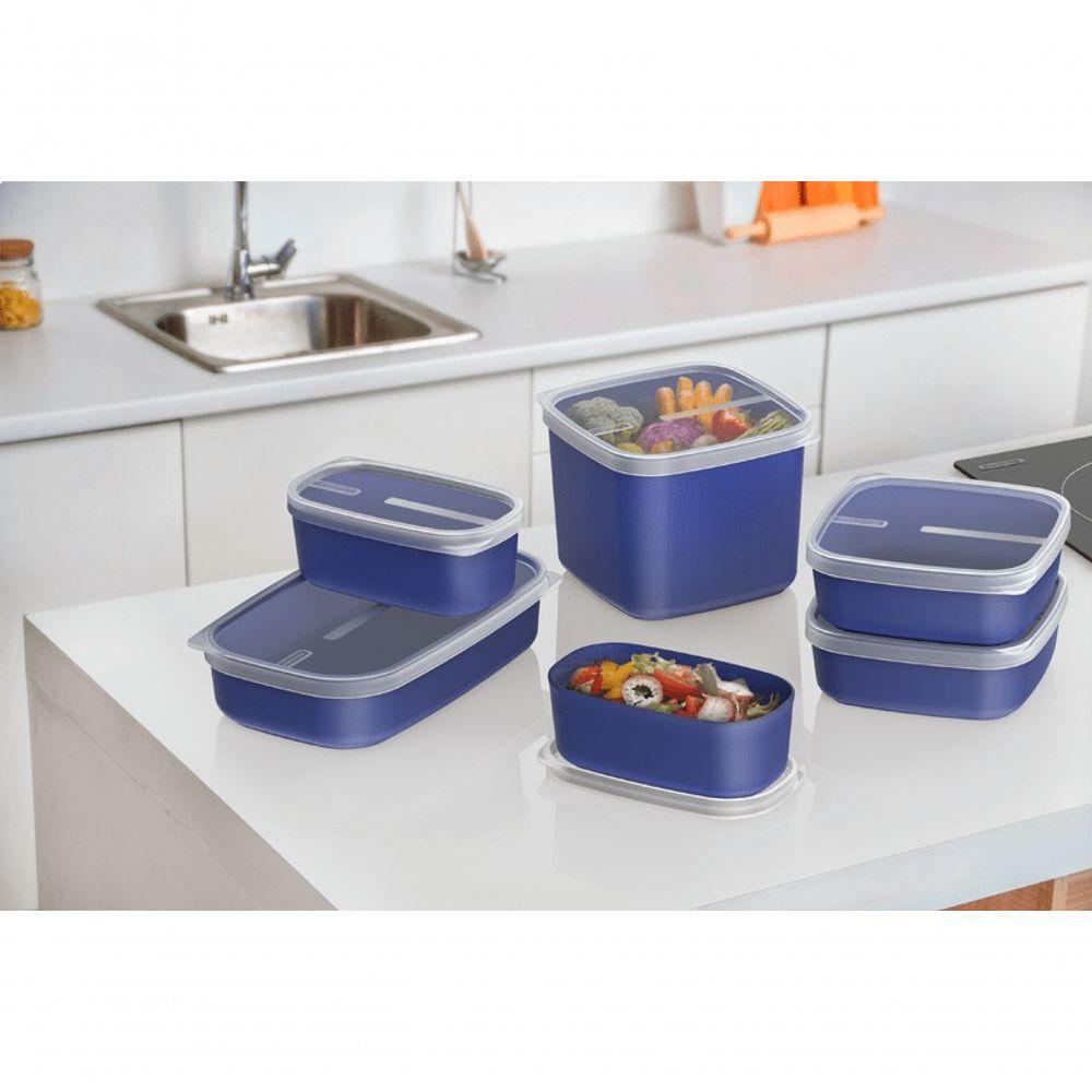 Jogo De Potes Tramontina Mixcolor Azul Com Tampa Transparente 6 Peças