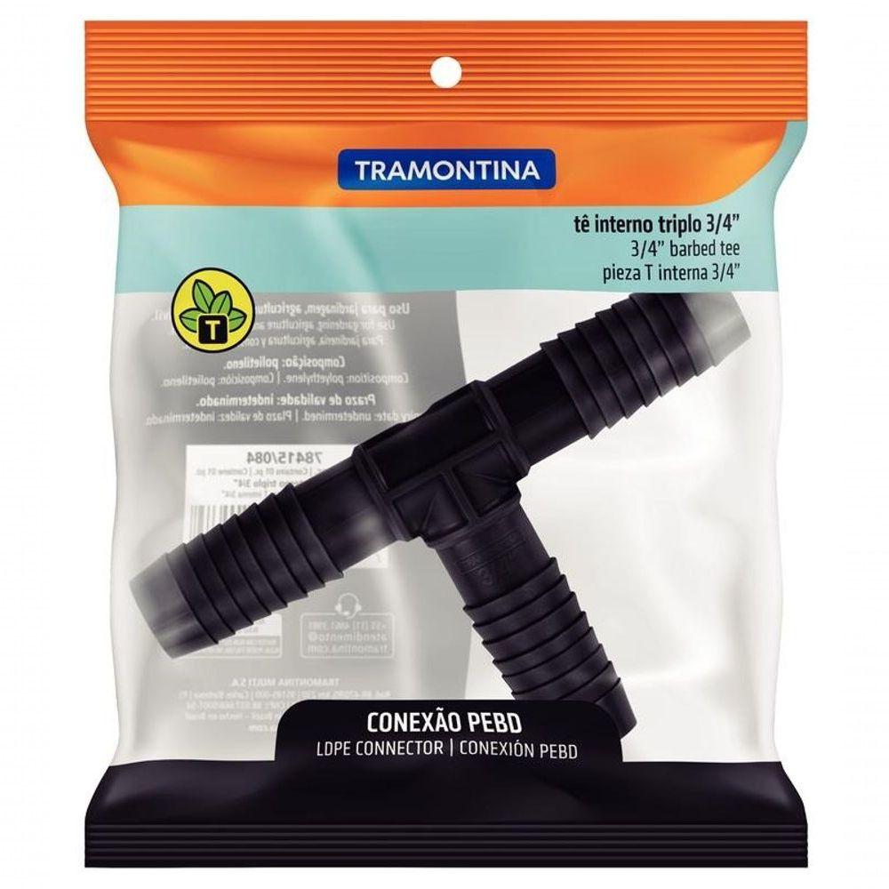 Conexão Tê Interno Triplo Tramontina 3-4" Para Mangueiras De Pebd
