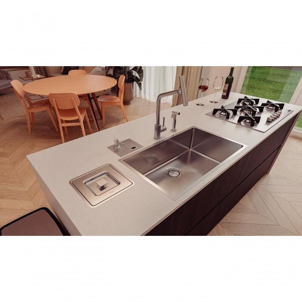 Porta Esponja De Embutir Tramontina Com Tampa E Dosador De Sabão Líquido Em Aço Inox