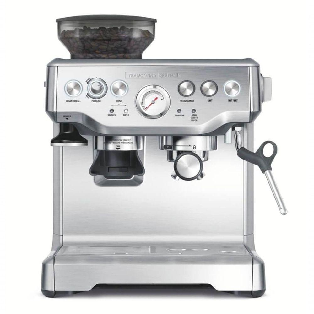 Cafeteira Elétrica Tramontina By Breville Express Pro Com Moedor 2 Litros 220 VComece o dia com mais praticidade e sabor com a Cafeteira Elétrica Express Pro em Aço Inox com Moedor 2 L 220 V da linha de Eletroportáteis Tramontina by Breville. Com ela, você prepara cafés e cappuccinos com qualidade no conforto de casa, graças ao vaporizador de leite integrado. A cafeteira conta com moedor embutido com 18 níveis de moagem, ;do mais grosso ao mais fino, ;e funil com capacidade para 250 g de grãos, suficiente para até 25 doses de café espresso fresco.Seu uso é simples e intuitivo: você mói, dosa, extrai e saboreia, tudo com controle preciso. Possui compartimento de moagem sem uso das mãos, bandeja coletora removível com separador de resíduos úmidos e secos, e tanque de água removível de 2 L com abastecimento superior. Para ainda mais comodidade, conta com bandeja de aquecimento para até 6 xícaras, controle de temperatura ajustável, extração automática e função de água quente instantânea. Um verdadeiro convite para transformar sua rotina com cafés mais frescos e aromáticos.Recomendações de Uso:Antes do Uso: Leia cuidadosamente todas as instruções do manual e guarde-o para consultas futuras. Remova e descarte com todos os materiais da embalagem e etiquetas promocionais.Modp de Uso: Antes de liga-lo a tomada e usa-lo, assegure-se sempre de que a Cafeteira Express Pro esteja corretamente montado. Siga as instruções fornecidas no manual. Não use outros acessórios além daqueles fornecidos com a Cafeteira Express Pro. Não use o moedor sem que a tampa do funil esteja instalada. Mantenha dedos, mãos, cabelos, roupas e utensílios afastados do funil durante o funcionamento. Use somente água fria da torneira no tanque de água. Não use nenhum outro líquido. Nunca use o produto sem água no tanque. Antes de usar a máquina, certifique-se de que o porta-filtro esteja firmemente inserido e encaixado na cabeça de infusão. Nunca remova o porta-filtro durante a operação de infusão, pois a máquina estará sob pressão. Não movimente o produto enquanto ele estiver em funcionamento. Não deixe a Cafeteira Express Pro sem supervisão durante o seu funcionamento. Deixe a Cafeteira Express Pro esfriar antes de movimentar ou limpar qualquer peça. Não posicione nada além das xícaras a serem aquecidas sobre o produto. Sempre que a Cafeteira Express Pro for deixada desacompanhada, não estiver em uso ou antes de limpar, mover, montar, desmontar ou guardar o aparelho, desligue-o, posicionando o botão LIGAR/DESL. na posição DESL., desativando-o da tomada e desconectando o cabo de alimentação.- Foto meramente ilustrativa.Informações Adicionais:- Tensão: 220V;- Frequência: 60 Hz;- Potência: 1560W;- Água quente instantânea;- Bandeja de aquecimento para 6 xícaras;- Compartimento de moagem sem o uso das mãos;- Moer, dosar e extrair, tudo em uma única máquina;- Extração automática para uma extração ideal do expresso;- Controle volumétrico, 1 e 2 xícaras, programável pelo usuário;- Controle ajustável de temperatura para um sabor ideal do café;- Bandeja coletora removível com separador de café úmido ou seco;- Tanque removível de água de 2 litros com abastecimento superior;- Capture o frescor dos grãos para o expresso em menos de um minuto;- Funil grande de 250g para grãos, para até 25 doses de café expresso fresco;- Moagem com espessura ajustável, com 18 configurações, do mais grosso ao mais fino, para uma extração ideal do expresso.