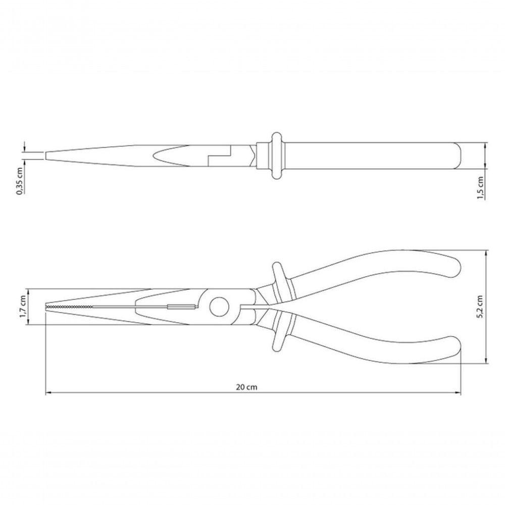 Alicate Bico Meia Cana Isolado Tramontina 8" 1000 V MasterO Alicate Bico Meia Cana 8 Polegadas Isolado 1000 V Tramontina Master é indispensável para quem atua com precisão em espaços reduzidos. Seu formato alongado permite alcançar áreas de difícil acesso, sendo ideal para aplicações eletroeletrônicas. Equipado com mandíbula que inclui área de corte para arames e parte serrilhada para firmar objetos com , ele combina versatilidade com eficiência. O cabo ergonômico possui isolação elétrica de até volts, oferecendo mais durante o uso em instalações de baixa tensão. Um item para quem valoriza qualidade e desempenho em cada detalhe.Recomendações de Uso:Modo de uso: Use óculos, luvas e outros equipamentos de proteção de acordo com a tarefa a ser executada. Observe as indicações de uso de cada tipo de alicate ou torquês. Nunca utilize um alicate ou torquês para cortar arames endurecidos, a não ser que tenha sido projetado para este fim. Nunca utilize o alicate ou torquês como martelo. Ele pode trincar ou até mesmo quebrar. Nunca exponha os alicates ou torqueses ao calor excessivo. Isto pode alterar o tratamento térmico aplicado no corte e afetar o seu desempenho. Sempre posicione o corte do alicate ou torquês perpendicularmente ao eixo do arame para uma operação mais rápida e segura. Utilize alicates isolados, identificados pela marcação V no cabo, quando for necessário trabalhar em locais com corrente elétrica. Importante: nestes casos, inspecione a integridade da isolação elétrica, e, se aparecerem trincas na isolação, suspenda o uso imediatamente. Nunca aumente o comprimento dos cabos dos alicates ou torqueses. Isto amplifica a força exercida sobre a cabeça da ferramenta podendo quebrá-la. Nunca utilize o alicate ou torquês em porcas e parafusos. Para estes trabalhos, indica-se o uso de chaves de aperto. Lubrifique periodicamente a articulação. Isto aumenta a vida útil do produto e melhora sua performance. Armazene em limpo e seco.- Foto meramente ilustrativa.Informações Adicionais:- Acabamento fosfatizado;- Cabeça e articulação lixadas;- Articulação suave para facilitar o uso;- Corpo forjado em aço especial e temperado;- Têmpera especial no gume de corte e mandíbulas;- Produto em conformidade com a NBR 9699 e NR10;- Os cabos possuem um formato ergonômico para aumentar o conforto;- As ferramentas são produzidas e testadas conforme normas específicas;- Isolação V para uso em locais com baixas tensões de até V em corrente alternada;- O aço carbono especial empregado na fabricação do produto, aliado à têmpera especial no gume de corte garantem maior resistência.