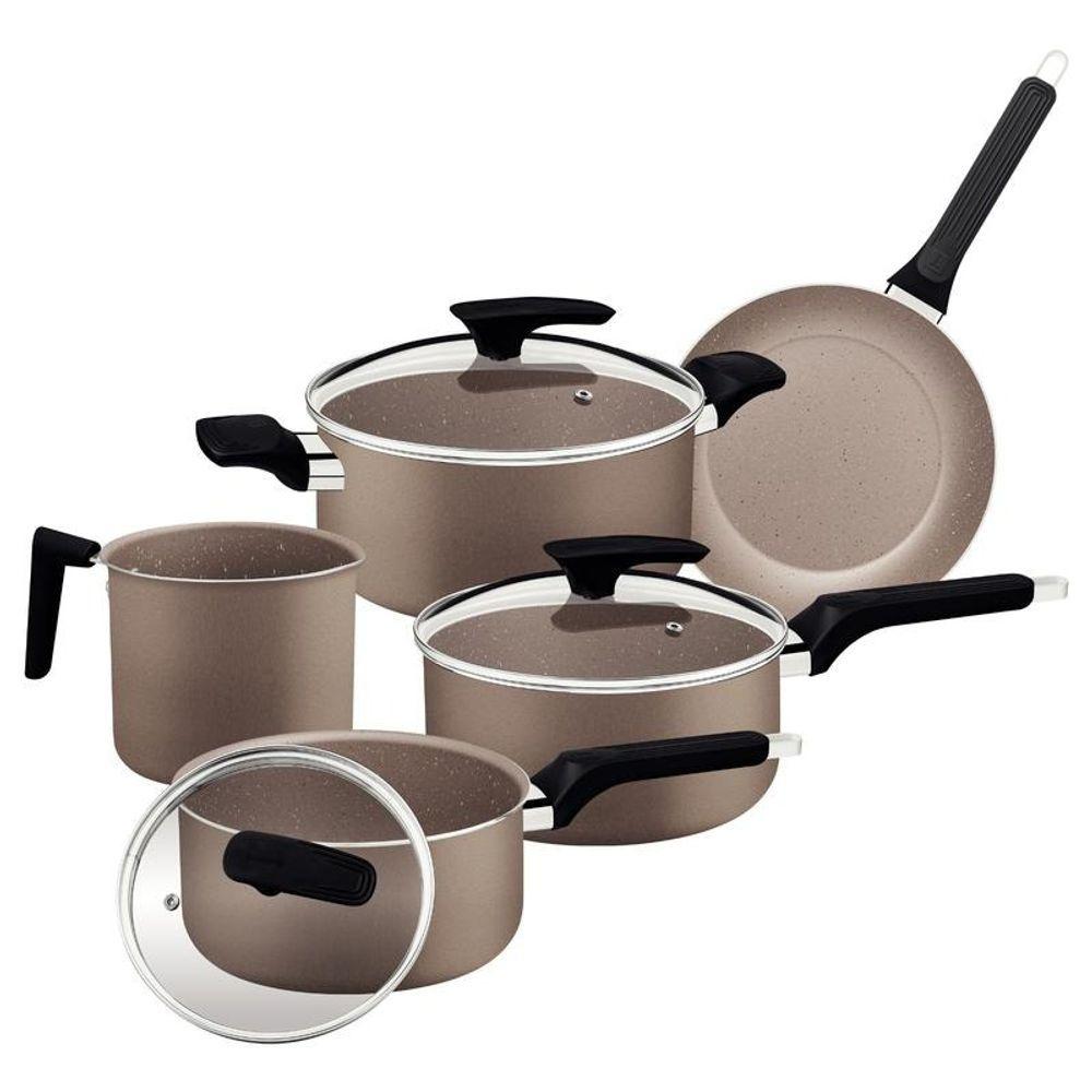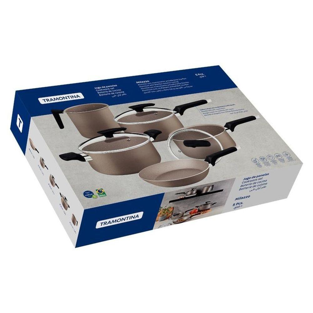 Jogo De Panelas Tramontina Milazzo Amêndoa Alumínio Com Revestimento Antiaderente Starflon Max 5 Peças