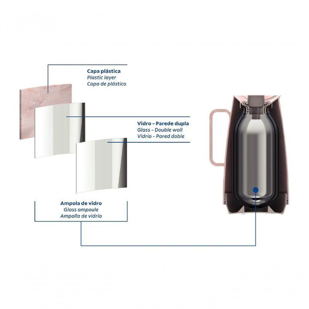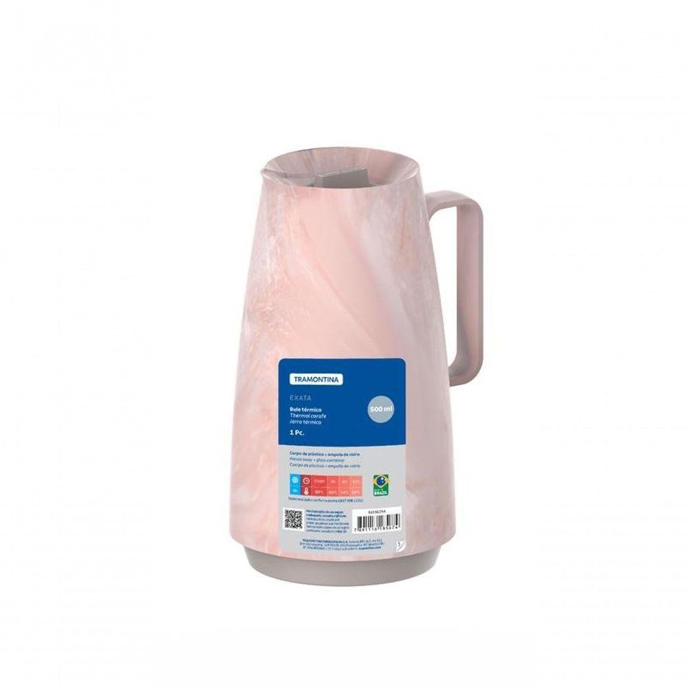 Bule Térmico Tramontina Exata 500ml Marmorizado RosaPara quem valoriza charme à mesa e café sempre na temperatura certa, o bule térmico Tramontina Exata marmorizado rosa é aquele detalhe que faz toda a diferença.Com 500 ml de capacidade, ele é ideal para quem gosta de ter sempre por perto sua bebida favorita, seja um café fresquinho pela manhã ou um chá gelado no meio da tarde. Fabricado em plástico resistente com acabamento marmorizado e ampola interna de vidro, o bule térmico alia leveza e eficiência no dia a dia. Seu formato compacto se adapta facilmente a diferentes espaços, do home office à cozinha, enquanto o visual delicado na cor rosa traz um toque moderno e acolhedor para qualquer ambiente. A tampa com sistema de rolha e corta-pingos embutido garante um servir prático, sem desperdícios ou respingos. Versátil, ele mantém líquidos quentes ou frios por mais tempo e ainda facilita o uso com total . Perfeito para quem busca um bule térmico pequeno, elegante e funcional, com a qualidade que só a Tramontina oferece. Ideal para acompanhar as pausas do seu dia, seja no café da manhã, na mesa do lanche ou nos momentos de aconchego.Recomendações de Uso:- Conforme orientação do Fabricante: Testar primeiramente com Água. Testes não realizados da forma correta, será impossibilitado a troca.Modo de Uso: ;Recomendamos pré-aquecer/pré-refrigerar o produto com água antes do uso para manter a bebida aquecida/fria por mais tempo. Para evitar vazamentos, não encha o produto até o seu topo. Não agite o produto; Não olhe diretamente para dentro; Não coloque gelo seco, refrigerante, bebidas gaseificadas ou líquidos que possam gerar alta pressão; Cuidado ao manusear o produto, não deixe bater ou cair. Se vier a acontecer, certifique-se que não fiquem resíduos de vidro no interior; Todo manuseio de vidro (material frágil) deve ser feito com total atenção, e este produto com ampola de vidro não foge a essa regra; Não beba diretamente da garrafa; Verifique frequentemente o aperto das peças rosqueáveis (fundo/base); Não coloque bebida quente e, em seguida, bebida gelada ou vice-versa, pois isso pode danificar a ampola; Mantenha fora do alcance das crianças; Após o uso ou limpeza, aconselhamos deixar o produto aberto; Não remova a ampola de vidro do produto, somente se ela quebrar ou sofrer algum dano e houver necessidade de substituição; Não use o produto para transportar ou armazenar cubos de gelo, pois podem danificar a parte interna do bule; Para minimizar o crescimento de bactérias, não use o produto para guardar leite quente ou comidas de bebês. Lave o produto somente com detergente neutro e esponja macia; Não utilize escova com pontas que possam quebrar a ampola de vidro; Se houver odores desagradáveis, utilize uma solução com a medida de uma colher (sopa) de bicarbonato de sódio dissolvida em água quente (capacidade máxima) e deixe agir por 12 horas; após, enxague bem e realize a limpeza diária.- Foto meramente ilustrativa.Informações Adicionais:- Sistema corta-pingos embutido;- Seus componentes são BPA free;- Uso intuitivo com abertura estilo "rolha";- Cabo confortável com toque suave e muito ;- que direciona o fluxo da bebida, evitando respingos;- Robusto, simples e moderno, ocupa menos espaço na sua casa e durante o ;- Ideal para manter líquidos quentes ou frios na temperatura adequada por muito mais tempo;- A capacidade volumétrica poderá ter uma variação de até 10% em seu volume nominal indicado.
