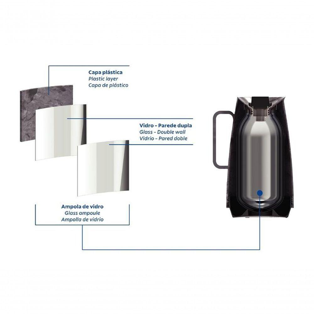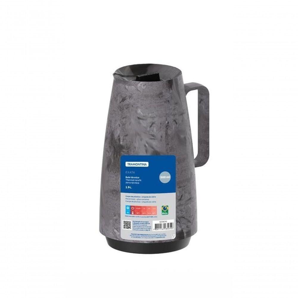 Bule Térmico Tramontina Exata 500ml Marmorizado CinzaPara quem não abre mão de praticidade e cuidado nos detalhes, o bule térmico Tramontina Exata marmorizado cinza é a escolha certa para acompanhar os melhores momentos do dia. Com 500 ml de capacidade, ele é ideal para manter seu café ou chá sempre na temperatura ideal, seja em casa, no trabalho ou durante a pausa da tarde. Seu design compacto com acabamento marmorizado em tom cinza traz elegância discreta à mesa, combinando com diferentes estilos de decoração. Produzido em plástico de alta qualidade, com ampola interna de vidro, o bule é indicado para líquidos quentes e frios, garantindo versatilidade no uso diário. A abertura em formato de rolha com corta-pingos embutido evita respingos e torna o ato de servir mais prático e . Leve, bonito e eficiente, ele reúne tudo o que você espera de um item essencial para sua rotina. Com a assinatura da Tramontina, é um aliado que une beleza e funcionalidade na medida certa.Recomendações de Uso:- Conforme orientação do Fabricante: Testar primeiramente com Água. Testes não realizados da forma correta, será impossibilitado a troca.Modo de Uso: ;Recomendamos pré-aquecer/pré-refrigerar o produto com água antes do uso para manter a bebida aquecida/fria por mais tempo. Para evitar vazamentos, não encha o produto até o seu topo. Não agite o produto; Não olhe diretamente para dentro; Não coloque gelo seco, refrigerante, bebidas gaseificadas ou líquidos que possam gerar alta pressão; Cuidado ao manusear o produto, não deixe bater ou cair. Se vier a acontecer, certifique-se que não fiquem resíduos de vidro no interior; Todo manuseio de vidro (material frágil) deve ser feito com total atenção, e este produto com ampola de vidro não foge a essa regra; Não beba diretamente da garrafa; Verifique frequentemente o aperto das peças rosqueáveis (fundo/base); Não coloque bebida quente e, em seguida, bebida gelada ou vice-versa, pois isso pode danificar a ampola; Mantenha fora do alcance das crianças; Após o uso ou limpeza, aconselhamos deixar o produto aberto; Não remova a ampola de vidro do produto, somente se ela quebrar ou sofrer algum dano e houver necessidade de substituição; Não use o produto para transportar ou armazenar cubos de gelo, pois podem danificar a parte interna do bule; Para minimizar o crescimento de bactérias, não use o produto para guardar leite quente ou comidas de bebês. Lave o produto somente com detergente neutro e esponja macia; Não utilize escova com pontas que possam quebrar a ampola de vidro; Se houver odores desagradáveis, utilize uma solução com a medida de uma colher (sopa) de bicarbonato de sódio dissolvida em água quente (capacidade máxima) e deixe agir por 12 horas; após, enxague bem e realize a limpeza diária.- Foto meramente ilustrativa.Informações Adicionais:- Sistema corta-pingos embutido;- Seus componentes são BPA free;- Uso intuitivo com abertura estilo "rolha";- Cabo confortável com toque suave e muito ;- que direciona o fluxo da bebida, evitando respingos;- Robusto, simples e moderno, ocupa menos espaço na sua casa e durante o ;- Ideal para manter líquidos quentes ou frios na temperatura adequada por muito mais tempo;- A capacidade volumétrica poderá ter uma variação de até 10% em seu volume nominal indicado.