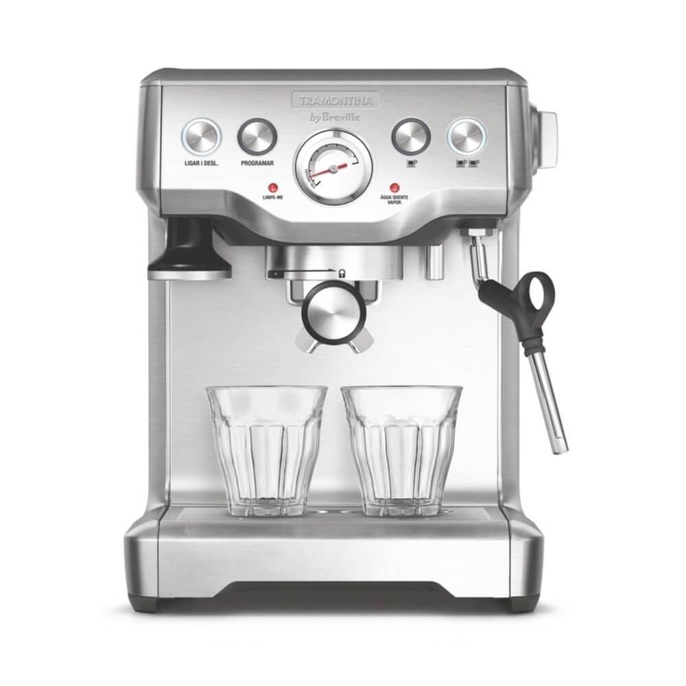 Cafeteira Elétrica Tramontina By Breville Express 1,8 Litros 127 VTenha a experiência de um café no conforto da sua casa com a Cafeteira Elétrica Express em Aço Inox 1,8 L 127 V da linha de Eletroportáteis Tramontina by Breville. Ideal para quem valoriza sabor, praticidade e um bom design, ela permite preparar espressos intensos e cafés cremosos com facilidade. ;Seu sistema de aquecimento por bobina térmica em aço inox garante controle preciso da temperatura da água, enquanto o controle eletrônico PID proporciona estabilidade térmica durante todo o preparo. Conta também com ajuste de temperatura, para extrair o melhor aroma e sabor dos grãos. Com recursos como volumes programáveis de espresso, tamper integrado removível de 54 mm e porta-filtro em aço inox, a cafeteira uma experiência completa. O tanque removível de 1,8 L, bandeja coletora com indicador de nível, bandeja aquecedora de xícaras e bico de vapor de estilo comercial tornam tudo mais prático. Além disso, os materiais são livres de BPA e o modo de desativação automática oferece mais .Perfeita para quem é apaixonado por café e não abre mão de qualidade em cada xícara.Recomendações de Uso:Antes do Uso: Leia cuidadosamente todas as instruções do manual e guarde-o para consultas futuras. Remova e descarte com todos os materiais de embalagem e etiquetas ou adesivos promocionais.Modo de Uso:Não coloque a cafeteira próximo à beira da bancada ou da mesa durante a utilização. Assegure-se de que a superfície está nivelada, limpa e livre de água e outras substâncias. Não use o aparelho dentro da cuba da pia. Verifique sempre se o aparelho está adequadamente montado antes de ligá-lo à tomada e colocá-lo em funcionamento. Siga as instruções fornecidas no manual. Não use outros acessórios além daqueles fornecidos com a Cafeteira Express. Não tente usar o aparelho com qualquer outro método além daqueles descritos neste manual. Nunca use a cafeteira sem água no tanque. Antes de usar a máquina, certifique-se de que o porta-filtro esteja firmemente inserido e encaixado. Nunca remova o porta-filtro durante a operação de infusão, pois a máquina está sobpressão. Não movimente o aparelho enquanto ele estiver em funcionamento. Não deixe o aparelho sem acompanhamento durante o uso. Não toque nas superfícies quentes. Deixe o aparelho esfriar antes de movimentar ou limpar qualquer peça. Não posicione nadaalém das xícaras a serem aquecidas sobre a cafeteira. Sempre desligue o aparelho pondo o botão LIGAR/DESL na posição DESL e retire o plugue da tomada, caso o aparelho deva ser deixado sem acompanhamento ou esteja fora de uso, e também antes de limpar, movimentar, desmontar, montar ou guardar o aparelho.- Foto meramente ilustrativa.Informações Adicionais:- Tensão: 127V ;- Potência: 1700W;- Frequência: 60 Hz ;- Materiais sem BPA;- Controle volumétrico;- Água quente instantânea;- Seletor de vapor e água quente;- Porta-filtro de 54 mm de aço inox;- Bico de vapor de estilo comercial;- Modo de desativação automática;- Bandeja de aquecimento para xícaras;- Tamper integrado removível de 54 mm;- Tanque de água removível de 1,80 litros;- Volumes programáveis para a dose de expresso;- Bandeja coletora removível, com indicador de bandeja cheia;- Controle ajustável de temperatura, para um café com sabor ideal;- Controle eletrônico PID de temperatura, para maior estabilidade da temperatura;- Sistema de aquecimento por bobina térmica, a bobina de água integrada, de aço inox, controla com precisão a temperatura da água.