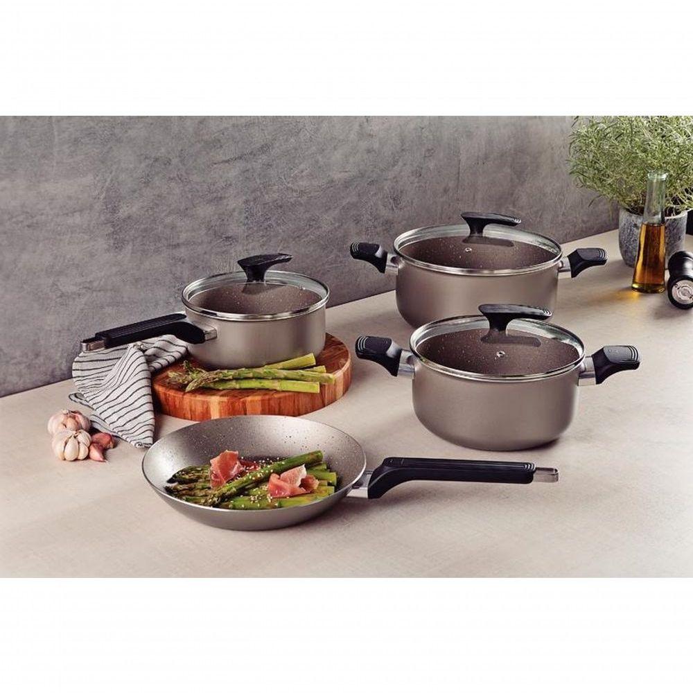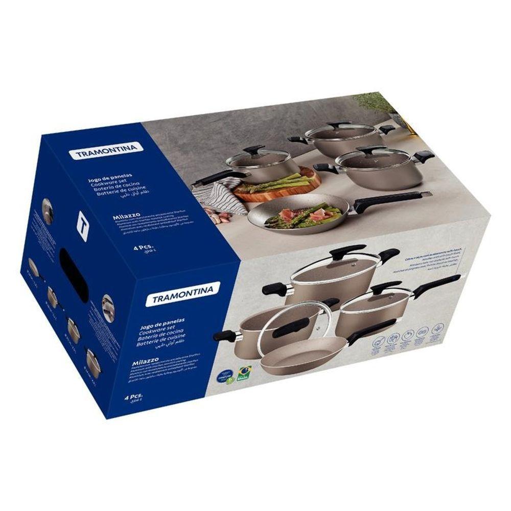 Jogo De Panelas Tramontina Milazzo Amêndoa Alumínio Com Revestimento Antiaderente Starflon Max 4 Peças
