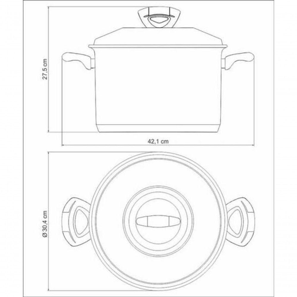 Caldeirão Tramontina Solar Baquelite Aço Inox 28cm A Tramontina usa a mais alta tecnologia para produzir panelas de aço inox com fundo triplo. São duas camadas de aço inox envolvendo uma camada de alumínio. Dessa forma, o calor da chama se distribui por igual, deixando os alimentos muito mais macios e saborosos. Além disso a comida cozinha muito mais rápido, o que acaba gerando economia.Recomendações de Uso:Antes do uso: Antes de utilizar o , remova as eventuais etiquetas e lave-o com água quente e de uso: Use uma fonte de calor brando para evitar que o alimento grude no fundo do caldeirão. O fundo triplo distribui uniformemente o calor, não sendo necessário o fogo alto. E, além disso, você economiza energia. Quando o caldeirão for utilizada no fogão a gás, a chama não deve ultrapassar a base do caldeirão. No caso de uso de chapa elétrica, a chapa deverá ter diâmetro igual ou inferior ao do caldeirão . Sempre dissolva o sal em água fervendo ou com os alimentos, mexendo os ingredientes no início do cozimento. Não aqueça o alimento colocando um caldeirão do mesmo diâmetro sobre o outro. Esse procedimento é perigoso, pois cria vácuo e impossibilita a retirada do mesmo. Alguns alimentos que possuem amido, como massa e arroz, poderão deixar manchas na parte interna do caldeirão durante o ós o uso: Para remover facilmente as manchas, passe um pano umedecido com suco de limão ou vinagre, Evite deixar alimento no caldeirão por muito tempo o sal também pode provocar manchas. Para que o caldeirão de aço inox fique sempre bonito e com brilho, recomendamos que seja lavada somente com detergente e esponja. A Tramontina desenvolveu uma pasta especial para polir e remover manchas nos produtos de aço inoxidável, que está disponível nos principais pontos de venda. (94537000)Depois da lavagem, sempre que possível, enxágue o caldeirão com água quente e seque-o imediatamente, para que ela mantenha o brilho , pois o cloro e as substâncias contidas na água podem deixar manchas no caldeirão. Não deixe o caldeirão vazio sobre uma fonte de calor. Deixe os caldeirões quentes somente em superfícies resistentes ao calor. Os cabos de inox aquecem durante o cozimento, por isso use luvas durante o manuseio.- Foto meramente ilustrativa- Embalagem litografadaInformações Adicionais:- Totalmente feita em aço inox, por isso não solta nenhum resíduo nos alimentos, mantendo-os saudáveis. - Altamente durável, mantém as características , preservando a beleza, a higiene e a durabilidade do material. - O fundo triplo (aço inox + alumínio + aço inox) distribui o calor uniformemente, proporcionando um cozimento mais rápido e uniforme, economizando energia e deixando os alimentos aquecidos por mais tempo. - Design diferenciado e moderno, com acabamento em alto brilho.- Cabos, alças e pegadores em baquelite, não aquecem. - Cabos e alças com protetor de chamas, evitando que queimem quando a chama não estiver centralizada no fundo da caldeirão. - Possui tampa com saída de vapor e encaixe perfeito. - Pode ser lavado diariamente na máquina de lavar louças.- Pode ser utilizada nos fogões: elétrico, gás, indução e vitrocerâmico.