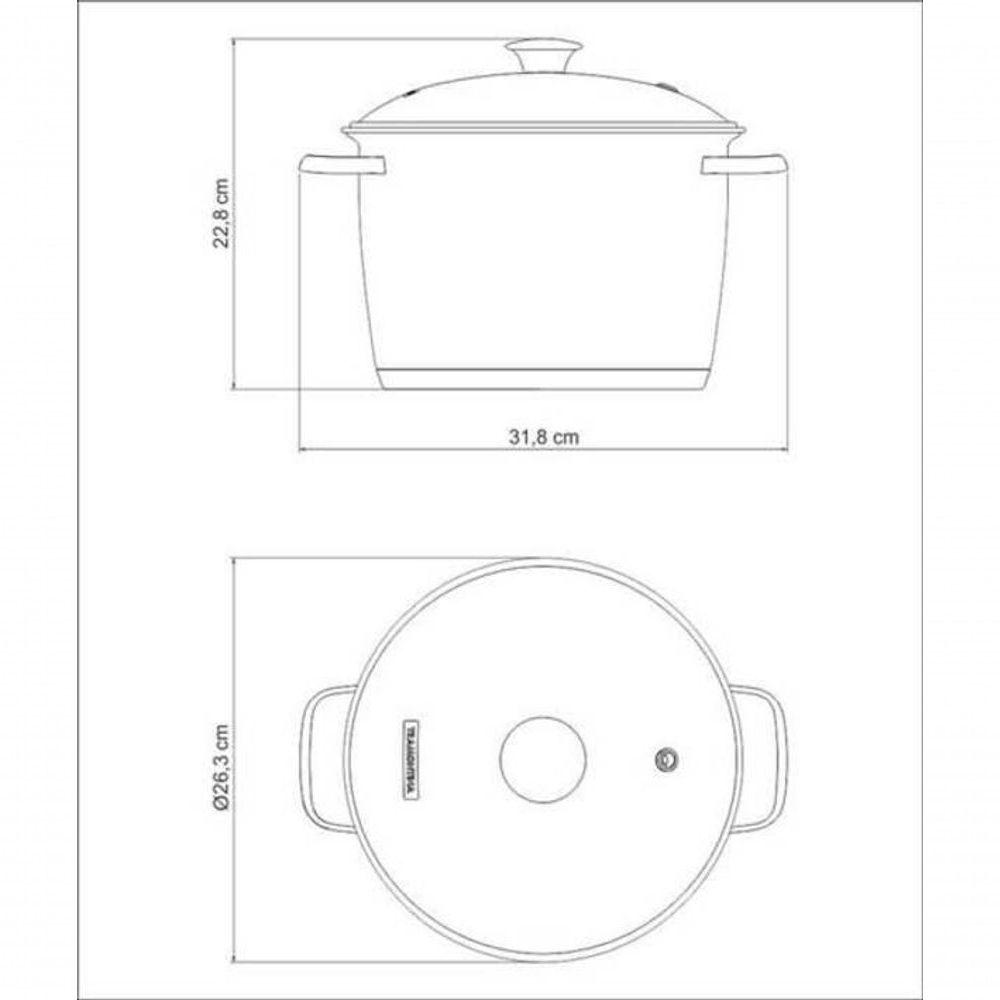 Caldeirão 24cm Tramontina Allegra Aço Inox Com Tampa De VidroA Tramontina usa a mais alta tecnologia para produzir panelas de aço inox com fundo triplo. São duas camadas de aço inox envolvendo uma camada de alumínio. Dessa forma, o calor da chama se distribui por igual, deixando os alimentos muito mais macios e saborosos. Além disso a comida cozinha muito mais rápido, o que acaba gerando economia.Recomendações de Uso:Antes do uso: Antes de utilizar o , remova as eventuais etiquetas e lave-o com água quente e de uso: Use uma fonte de calor brando para evitar que o alimento grude no fundo do caldeirão. O fundo triplo distribui uniformemente o calor, não sendo necessário o fogo alto. E, além disso, você economiza energia. Quando o caldeirão for utilizada no fogão a gás, a chama não deve ultrapassar a base do caldeirão. No caso de uso de chapa elétrica, a chapa deverá ter diâmetro igual ou inferior ao do caldeirão . Sempre dissolva o sal em água fervendo ou com os alimentos, mexendo os ingredientes no início do cozimento. Não aqueça o alimento colocando um caldeirão do mesmo diâmetro sobre o outro. Esse procedimento é perigoso, pois cria vácuo e impossibilita a retirada do mesmo. Alguns alimentos que possuem amido, como massa e arroz, poderão deixar manchas na parte interna do caldeirão durante o ós o uso: Para remover facilmente as manchas, passe um pano umedecido com suco de limão ou vinagre, Evite deixar alimento no caldeirão por muito tempo o sal também pode provocar manchas. Para que o caldeirão de aço inox fique sempre bonito e com brilho, recomendamos que seja lavada somente com detergente e esponja. A Tramontina desenvolveu uma pasta especial para polir e remover manchas nos produtos de aço inoxidável, que está disponível nos principais pontos de venda. (94537000)Depois da lavagem, sempre que possível, enxágue o caldeirão com água quente e seque-o imediatamente, para que ela mantenha o brilho , pois o cloro e as substâncias contidas na água podem deixar manchas no caldeirão. Não deixe o caldeirão vazio sobre uma fonte de calor. Deixe os caldeirões quentes somente em superfícies resistentes ao calor. Os cabos de inox aquecem durante o cozimento, por isso use luvas durante o manuseio.- Foto meramente ilustrativa- Embalagem litografadaInformações Adicionais:- Totalmente feita em aço inox, por isso não solta nenhum resíduo nos alimentos, mantendo-os saudáveis. - Altamente durável, mantém as características , preservando a beleza, a higiene e a durabilidade do material. - O fundo triplo (aço inox + alumínio + aço inox) distribui o calor uniformemente, proporcionando um cozimento mais rápido e uniforme, economizando energia e deixando os alimentos aquecidos por mais tempo. - Design diferenciado e moderno, com acabamento em alto brilho.- Desenho limpo e sem cantos torna a limpeza mais fácil. - Possui tampa de vidro com saída de vapor e encaixe perfeito. - Pode ser lavado diariamente na máquina de lavar louças.- Pode ser utilizada nos fogões: elétrico, gás, indução e vitrocerâmico.