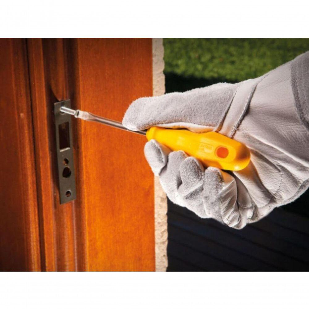 Chave De Fenda Tramontina Master Yellow Com Ponta Chata 1/4x4"Ter um conjunto de ferramentas completo significa contar com peças que facilitem até os serviços mais simples. A Chave de Fenda Tramontina MASTER Yellow com Ponta Chata 1/4x4 Polegadas é exatamente assim: resistente e firme graças à haste em aço especial temperado, e confortável de usar por conta do cabo em polipropileno injetado. Com ela, apertar e afrouxar parafusos se torna muito mais prático e rápido. A escolha certa para completar sua caixa de ferramentas.Recomendações de Uso:Modo de uso: ;Use óculos, luvas e outros equipamentos de proteção de acordo com a tarefa a ser executada. Utilize chaves de fenda isoladas, identificadas pela marcação V, quando for necessário trabalhar em locais com corrente elétrica. Importante: nestes casos, inspecione a integridade da isolação elétrica, e, se aparecerem trincas na isolação, suspenda o uso imediatamente. Utilize chaves com ponta adequada para cada tipo de fenda, para realizar a tarefa de forma mais rápida e segura. Respeite o torque estabelecido por norma para cada bitola. Não utilize as chaves de fenda como formão ou alavanca. Não altere as dimensões da ponta para obter outro perfil. Armazene em limpo e seco.- Foto meramente ilustrativa.Informações Adicionais:- Acabamento niquelado;- Haste em aço especial temperado.- ;Cabos injetados com material de alta resistência;- ;As ferramentas são produzidas e testadas conforme normas específicas;- ;Os dimensionais das pontas são verificados com gabaritos padrão, calibrados e certificados;- As hastes das chaves de fendas são testadas em máquinas de ensaios ;específicas, para verificar o perfeito balanço entre resistência mecânica e dureza.