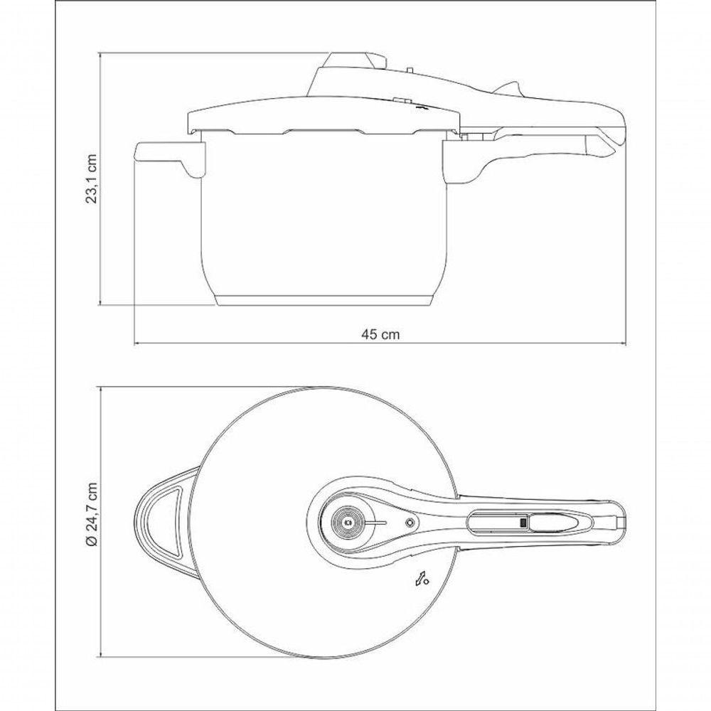 Panela De Pressão Tramontina Solar 22cm Em Aço Inox 6 LitrosA Panela de Pressão Tramontina em Aço Inox Fundo Triplo de 22 cm de diâmetro e capacidade para 6 litros, da linha Solar, é a escolha perfeita para quem busca praticidade na cozinha, seja para preparos rápidos ou longos. Com cinco dispositivos de , torna-se ainda mais fácil e utilizar uma panela de pressão. Feita em aço inox e com fundo triplo (aço inox + alumínio + aço inox), esta panela distribui o calor de forma uniforme, garantindo um cozimento mais rápido e homogêneo. Versátil e durável, a Panela de Pressão Tramontina se destaca como um item essencial em sua cozinha, proporcionando eficiência e em suas preparações culinárias.Recomendações de Uso:Modo de Uso: A capacidade volumétrica máxima para cozimento é de 2/3 da capacidade total da peça. Para que sua panela de pressão em aço inox fique sempre bonita e com brilho, recomendamos que seja lavada somente com detergente e esponja. A Tramontina desenvolveu uma pasta especial para polir e remover manchas nos produtos de aço inoxidável, que está disponível nos principais pontos de venda. Depois da lavagem, sempre que possível, enxágue a panela com água quente e seque-a imediatamente, para que ela mantenha o brilho , pois o cloro e as substâncias contidas na água podem deixar manchas na panela. Evite deixar alimento na panela por muito tempo. O sal também pode provocar manchas e até corrosão. Se surgirem manchas brancas devido ao excesso de cloro na água ou amido dos alimentos, limpe-a com um pouco de vinagre ou suco de limão. Chamas muito forte podem causar alteração na cor do aço, provocando manchas douradas ou azuladas. Recomenda-se utilizar fogo baixo. Só exponha sua panela de pressão a chamas de tamanho igual ou inferior a seu fundo. Não use produtos abrasivos, pois eles podem riscar o aço inoxidável. O anel de vedação foi desenvolvido especialmente para as panelas de pressão Solar. O anel de vedação deve ser substituído sempre que ficar rígido ou quebradiço. Período de validade do anel de vedação: 2 anos. Para uma maior vida útil deste item, unte-o periodicamente com óleo de cozinha. Antes de usar sua panela de pressão Solar Tramontina pela primeira vez, leia atentamente as indicações contidas no manual de instruções e guarde-o para consultas futuras. Para consultar uma assistência técnica autorizada acesse o site e busque pelo produto "Panelas de pressão aço inox".- Foto meramente ilustrativaInformações Adicionais:- Acompanha manual de instruções;- Possui sistema de descompressão;- Anel de vedação para reposição:62516/970;- É atestada pela Norma de ;- O cozi-vapore pode ser adquirido separadamente: 62516/500;- Possui 5 dispositivos de que trabalham de forma integrada;- Panela de Pressão Tramontina Solar de 80/95 kPa de pressão de trabalho;- Alça e cabo antitérmico, que garantem e facilidade no manuseio;- Totalmente feita de aço inox, por isso não solta nenhum resíduo nos alimentos, mantendo-os saudáveis;- A panela possui medidor de capacidade internamente, o que facilita o controle das quantidades dos alimentos;- Fundo triplo (aço inox + alumínio + aço inox) distribui o calor uniformemente, proporcionando um cozimento mais rápido e uniforme, economizando energia e deixando os alimentos aquecidos por mais tempo.