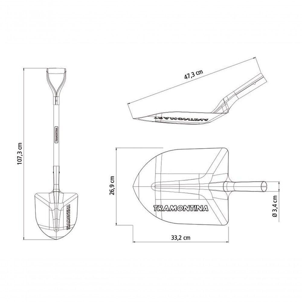 Pá De Bico Tramontina Pesada Em Aço Com Cabo De Madeira 74cm 405/30A pá de bico Tramontina 405/30 em aço com cabo de madeira 74 cm com empunhadura metálica ergonômica foi projetada para oferecer mais conforto e eficiência nas tarefas do dia a dia. Ideal para uso na agricultura, jardinagem e construção civil, ela conta com cabo de 74 centímetros em madeira renovável com acabamento envernizado, que proporciona um manuseio mais suave. Sua empunhadura metálica com design ergonômico facilita o uso, tornando o trabalho menos cansativo. A lâmina é cortada a laser e fabricada em aço carbono temperado, o que garante maior resistência e durabilidade. Além disso, a pintura eletrostática a pó protege contra a oxidação. É uma ferramenta robusta e , pronta para encarar qualquer desafio.Recomendações de Uso:Modo de uso: Utilizada na agricultura, jardinagem e construção civil, para juntar ou carregar materiais diversos. Para descarte dos produtos e embalagens siga as orientações de reciclagem vigentes.- Foto meramente ilustrativa.Informações Adicionais:- Possui empunhadura metálica ergonômica;- A pá é fabricada em aço carbono especial de alta qualidade, cortada a laser;- É temperada em todo o corpo da peça, proporcionando maior resistência e menor desgaste durante o uso;- Recebe pintura eletrostática a pó, que tem uma melhor apresentação visual e maior proteção contra oxidação;- A tinta utilizada na pintura é isenta de metais pesados na sua composição, o que minimiza o impacto ambiental;- O cabo de 74 cm desta ferramenta, além de possuir ótima resistência, é produzido com madeira de origem renovável;- Cabo com acabamento envernizado, para um melhor acabamento e apresentação do produto. A camada protetora em verniz incolor realça sua tonalidade, concedendo brilho e um toque mais liso ao produto.