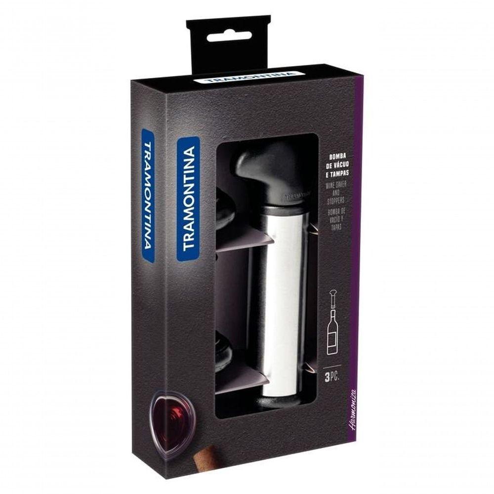 Jogo Para Vinhos Tramontina Harmoniza 3 PeçasNunca mais se preocupe em preservar o sabor do seu vinho por mais tempo. O Jogo para Vinhos Tramontina Harmoniza com Bomba de Vácuo e Tampas 3 Peças oferece tudo o que você precisa para garantir a qualidade do seu vinho. Com a Bomba de Vácuo em aço inox e ABS, você pode selar completamente a garrafa, eliminando o ar do seu interior e conservando as propriedades do vinho por mais tempo. Além disso, o conjunto inclui duas tampas em ABS emborrachado, proporcionando ainda mais segurança no armazenamento. Este jogo é essencial para você e seus convidados desfrutarem de momentos especiais com o melhor do vinho.Recomendações de Uso:Modo de Uso: Antes da primeira utilização, lave as tampas e seque-as. Posicione a tampa no gargalo e pressione até que ocorra a vedação da garrafa. Em seguida, posicione a bomba de vácuo sobre a tampa e bombeie até perceber resistência da bomba. Para remoção da tampa, pressione o botão superior por alguns segundos e retire-a. Acessórios não indicados para bebidas gaseificadas. Para garantir o bom funcionamento da bomba de vácuo, utilize tampas Tramontina que também são vendidas separadamente. Para limpeza dos componentes, utilize apenas água corrente e seque imediatamente. Certifique-se que não ocorra acúmulo de água ou vinho no interior da tampa. Para descarte do produto e embalagem, siga as orientações de reciclagem vigentes.- Foto meramente ilustrativa.Informações Adicionais:- Bomba de aço inox e ABS;- Tampas de ABS com emborrachado.