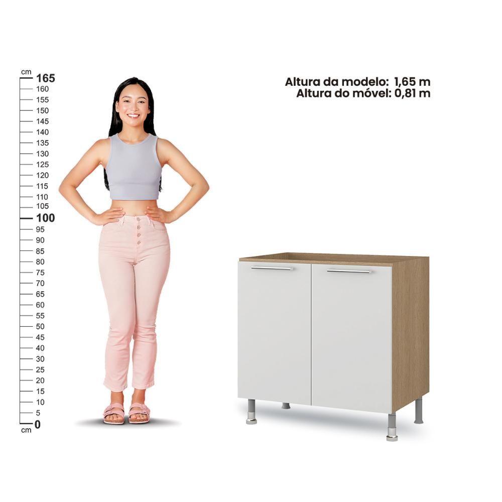 Balcão Cozinha Ditália Aspen 2 Portas Cd-102 Carvalho Branco