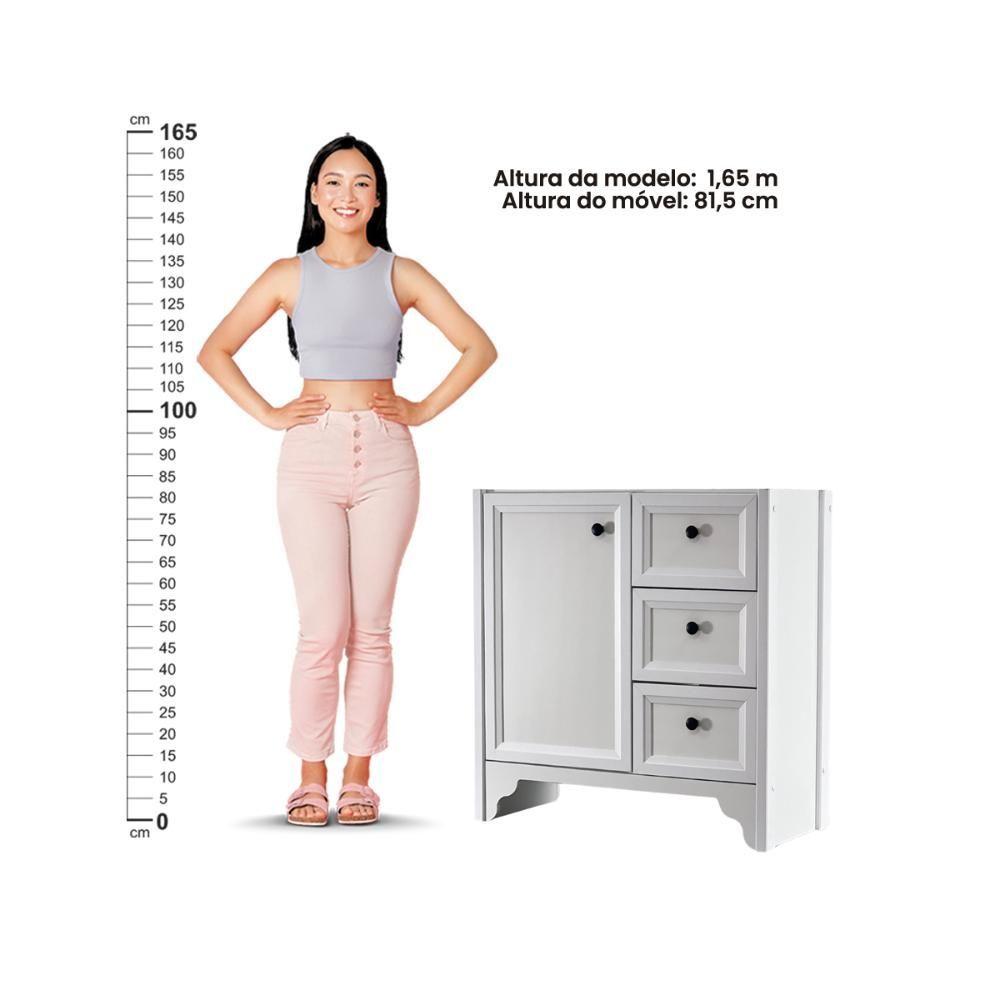 Gabinete Armário Banheiro Ditália 1 Porta 3 Gavetas Bn-05 Branco