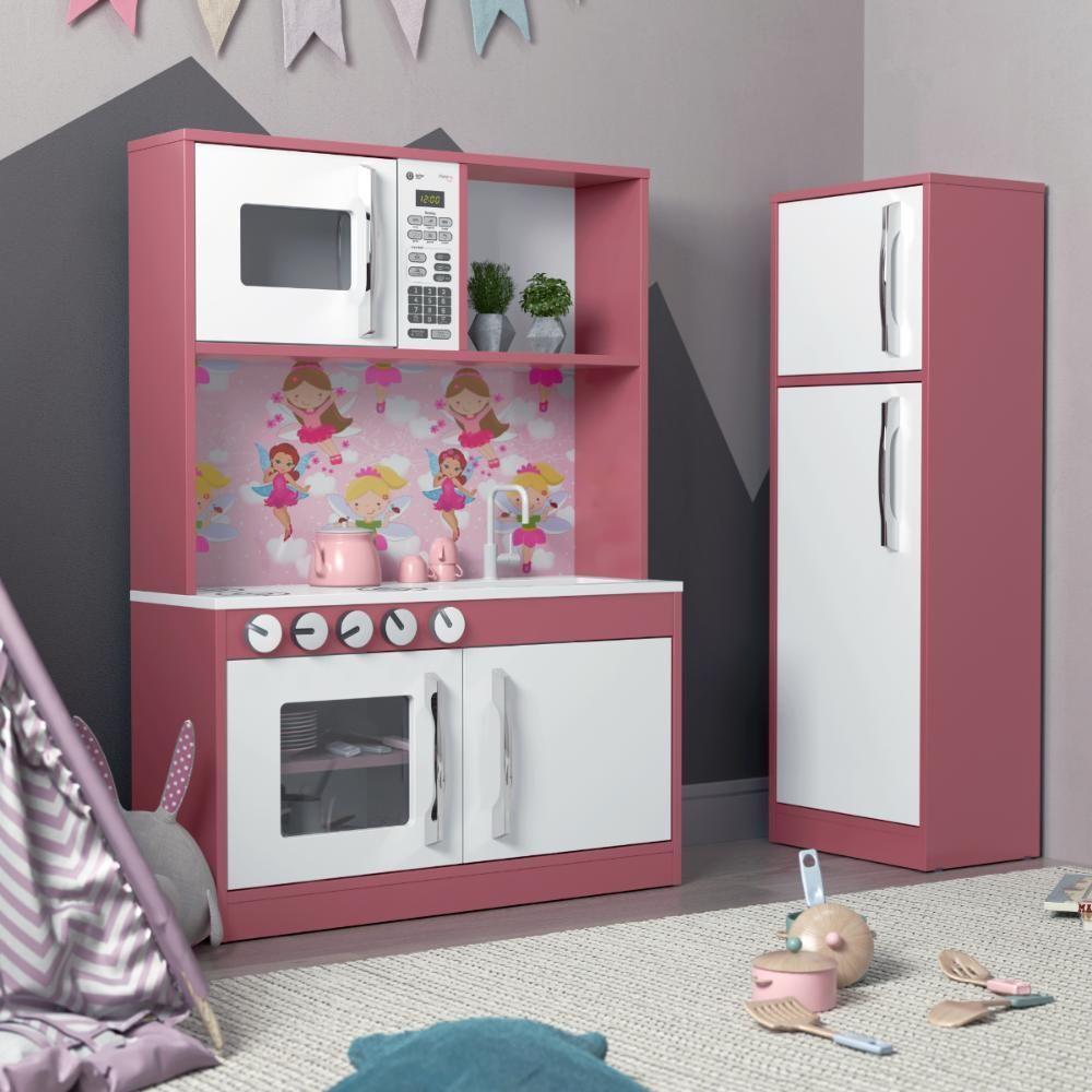 Cozinha Infantil Completa C/ Microondas Forno Fogão E Refrigerador Helena Branco E Rosa
