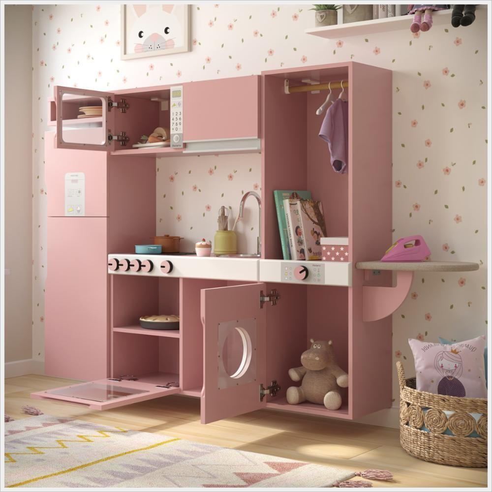 Cozinha Infantil Luli C/ Refrigerador, Fogão, Micro-ondas, Máq. Lavar/tabua Passar Rose