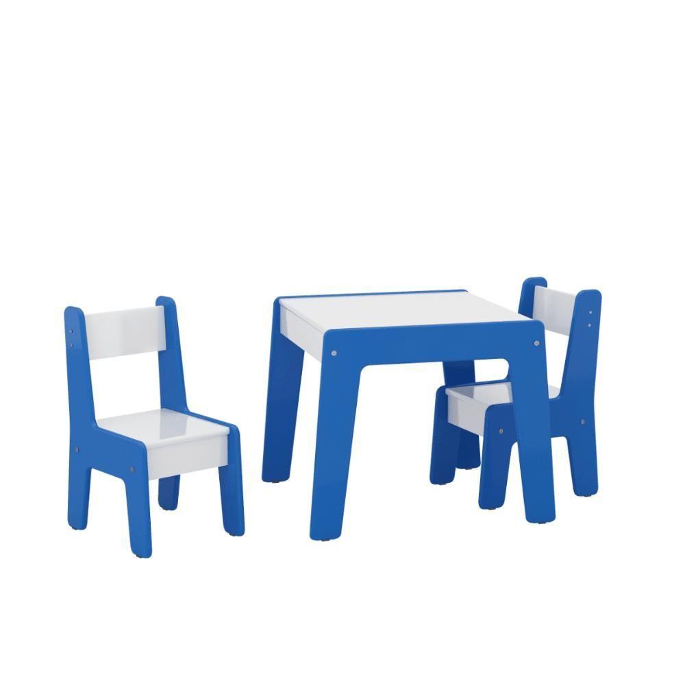 Conjunto Mesa Infantil 2 Cadeiras Mdf Helena Branco Azul