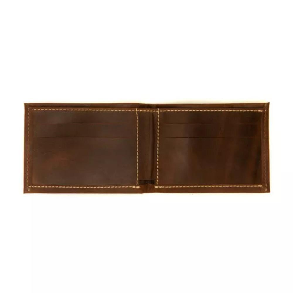 Carteira Slim Compacta Masculina Em Couro Durável Crazy Horse Café