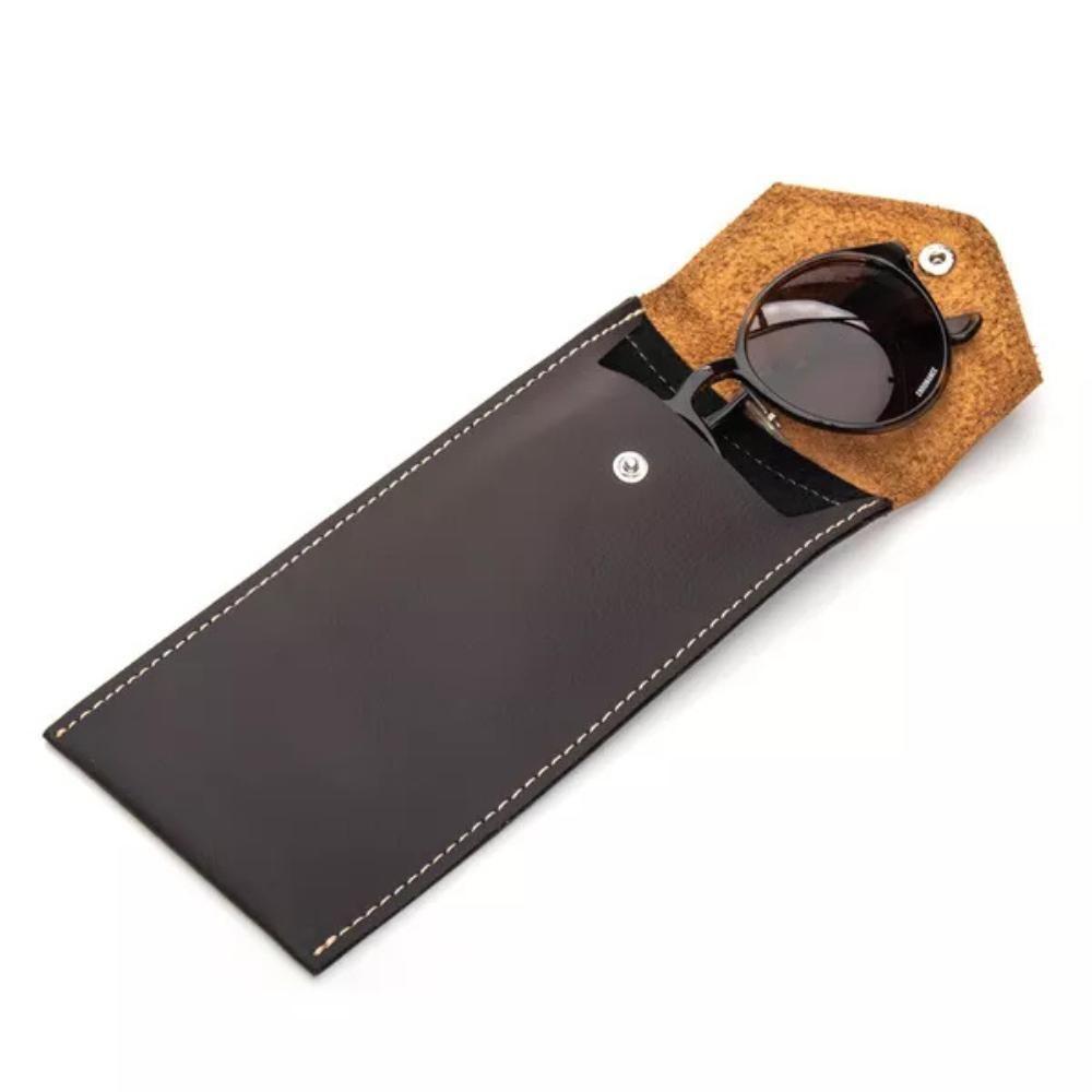 Case Porta Óculos Prático E Moderno Com Toque De Couro Crazy Horse Caramelo