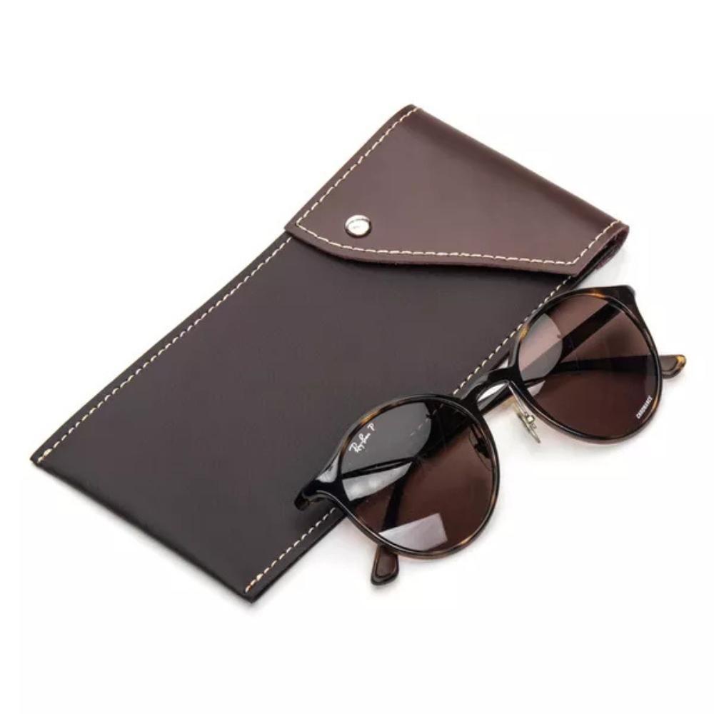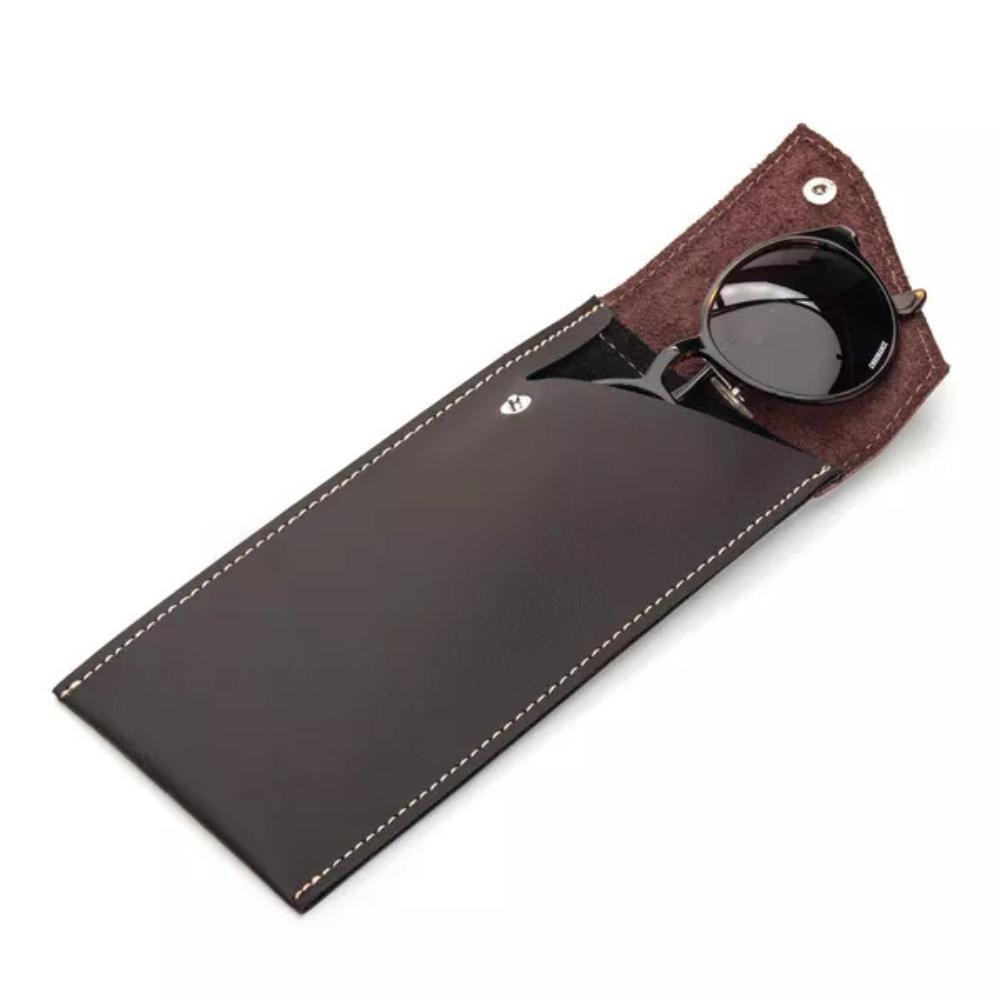 Estojo Porta Óculos De Sol Design Moderno Sintético E Couro Pull Up Pinhão