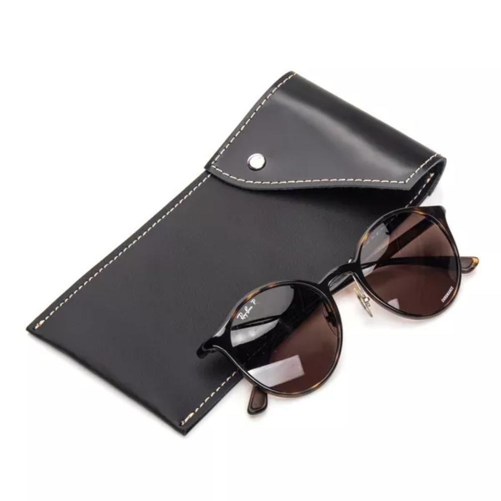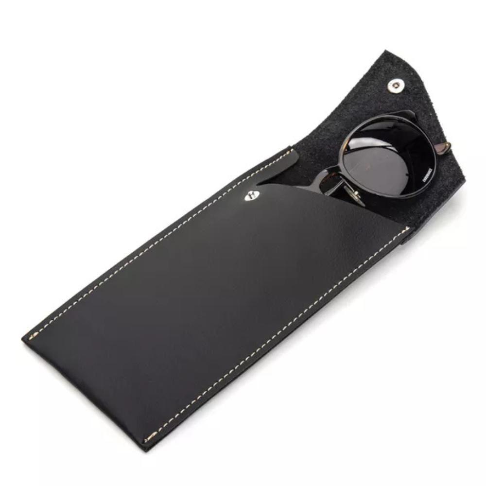 Estojo Porta Óculos De Sol Design Moderno Sintético E Couro Pull Up Preto