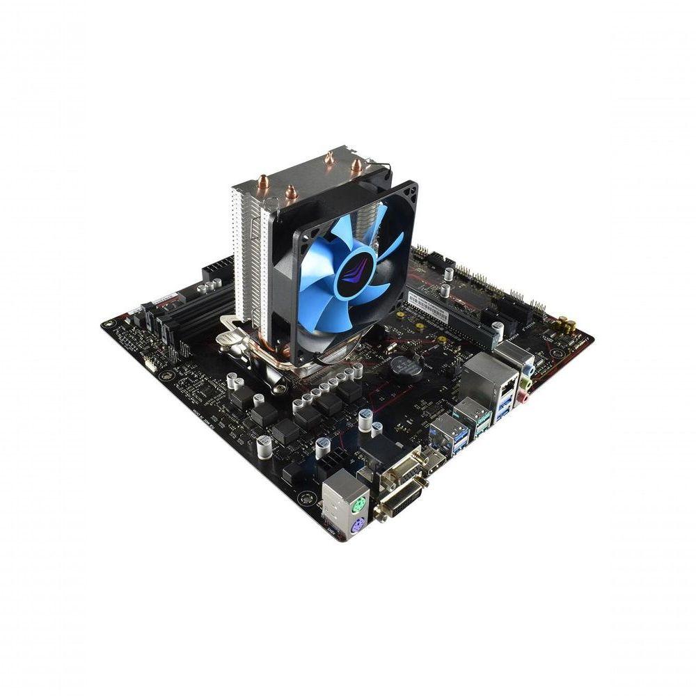 Cooler Para Processador Evus Cp-90 AzulDescricao Conheca o Cooler para Processador Evus CP-90 da SIBERIAN SERIES.Este produto foi desenvolvido com foco na emissao de baixo ruido e baixa taxa de aquecimento, alinhado a um design limpo e moderno, proporcionando alta qualidade e performance. Sua construcao entrega maxima eficiencia com 90w, atraves dos dutos de cobre que conduzem o calor de maneira mais rapida, com alta resistencia e confiabilidade.Este cooler para processador foi criado para ser o mais compacto possivel em seu gabinete e a instalacao foi simplificada para agilizar na sua montagem. E para finalizar, o Cooler para Processador Evus CP-90 e compativel com varios modelos de processadores da Intel e AMD, tornando-se muito versatil.*Imagens meramente ilustrativas.Especificacao Tecnica Potencia de entrada: 12V / 0,12APotencia nominal: 90WTamanho: 90*62*128 mmMaterial: Cobre + AluminioRPM: 2000 10%Tipo de rolamento: Rolamento hidroTubo de cobre: 2Cabo de 3 pinosRuido: 26,5dBAFluxo de Ar: 27,3CFMPressao do Ar: 2,5mmH2OTempo de vida: 30.000 horasCompatibilidade:Soquete Intel:LGA 1156 / LGA 1155 / LGA 1150 / LGA 1151 / LGA775Soquete AMD:FM2 + / FM2 / FM1 / AM4 / AM3 + / AM3 / AM2 + / AM2Descricao Conheca o Cooler para Processador Evus CP-90 da SIBERIAN SERIES.Este produto foi desenvolvido com foco na emissao de baixo ruido e baixa taxa de aquecimento, alinhado a um design limpo e moderno, proporcionando alta qualidade e performance. Sua construcao entrega maxima eficiencia com 90w, atraves dos dutos de cobre que conduzem o calor de maneira mais rapida, com alta resistencia e confiabilidade.Este cooler para processador foi criado para ser o mais compacto possivel em seu gabinete e a instalacao foi simplificada para agilizar na sua montagem. E para finalizar, o Cooler para Processador Evus CP-90 e compativel com varios modelos de processadores da Intel e AMD, tornando-se muito versatil.*Imagens meramente ilustrativas.Especificacao Tecnica Potencia de entrada: 12V / 0,12APotencia nominal: 90WTamanho: 90*62*128 mmMaterial: Cobre + AluminioRPM: 2000 10%Tipo de rolamento: Rolamento hidroTubo de cobre: 2Cabo de 3 pinosRuido: 26,5dBAFluxo de Ar: 27,3CFMPressao do Ar: 2,5mmH2OTempo de vida: 30.000 horasCompatibilidade:Soquete Intel:LGA 1156 / LGA 1155 / LGA 1150 / LGA 1151 / LGA775Soquete AMD:FM2 + / FM2 / FM1 / AM4 / AM3 + / AM3 / AM2 + / AM2