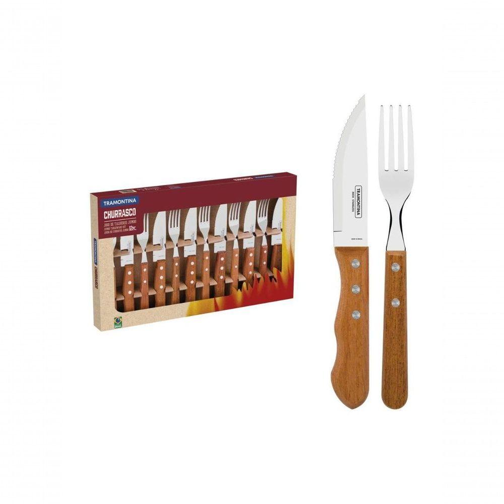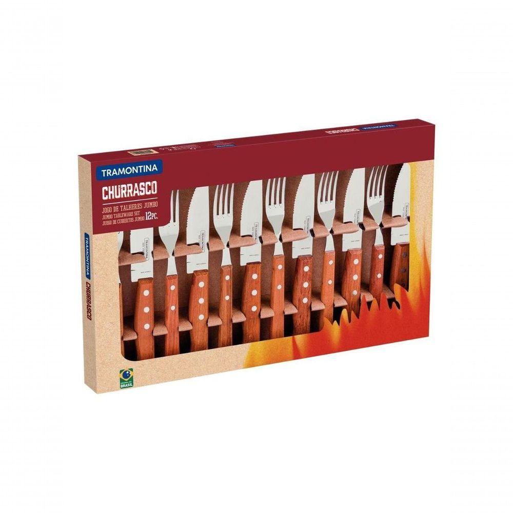 Jogo Para Churrasco Tramontina Dynamic Cabos De Madeira...Para saborear aquele churrasco especial com a família e os amigos, conte com o jogo para churrasco Tramontina Dynamic com lâminas em aço inox e cabos de madeira natural 12 peças.Desenvolvido para lhe proporcionar praticidade e beleza à sua mesa, ele tem peças produzidas com lâminas em aço inox, onde as facas tem maior durabilidade em seu fio de corte devido ao tratamento térmico e os garfos contam com maior resistência devido a estampagem.Seus cabos são em madeira natural e contam com rebites de alumínio que os deixam com um belíssimo design. Escolha seu corte de carne preferido e compartilhe sua mesa com a Tramontina!*Imagens meramente ilustrativas.Para saborear aquele churrasco especial com a família e os amigos, conte com o jogo para churrasco Tramontina Dynamic com lâminas em aço inox e cabos de madeira natural 12 peças.Desenvolvido para lhe proporcionar praticidade e beleza à sua mesa, ele tem peças produzidas com lâminas em aço inox, onde as facas tem maior durabilidade em seu fio de corte devido ao tratamento térmico e os garfos contam com maior resistência devido a estampagem.Seus cabos são em madeira natural e contam com rebites de alumínio que os deixam com um belíssimo design. Escolha seu corte de carne preferido e compartilhe sua mesa com a Tramontina!*Imagens meramente ilustrativas.