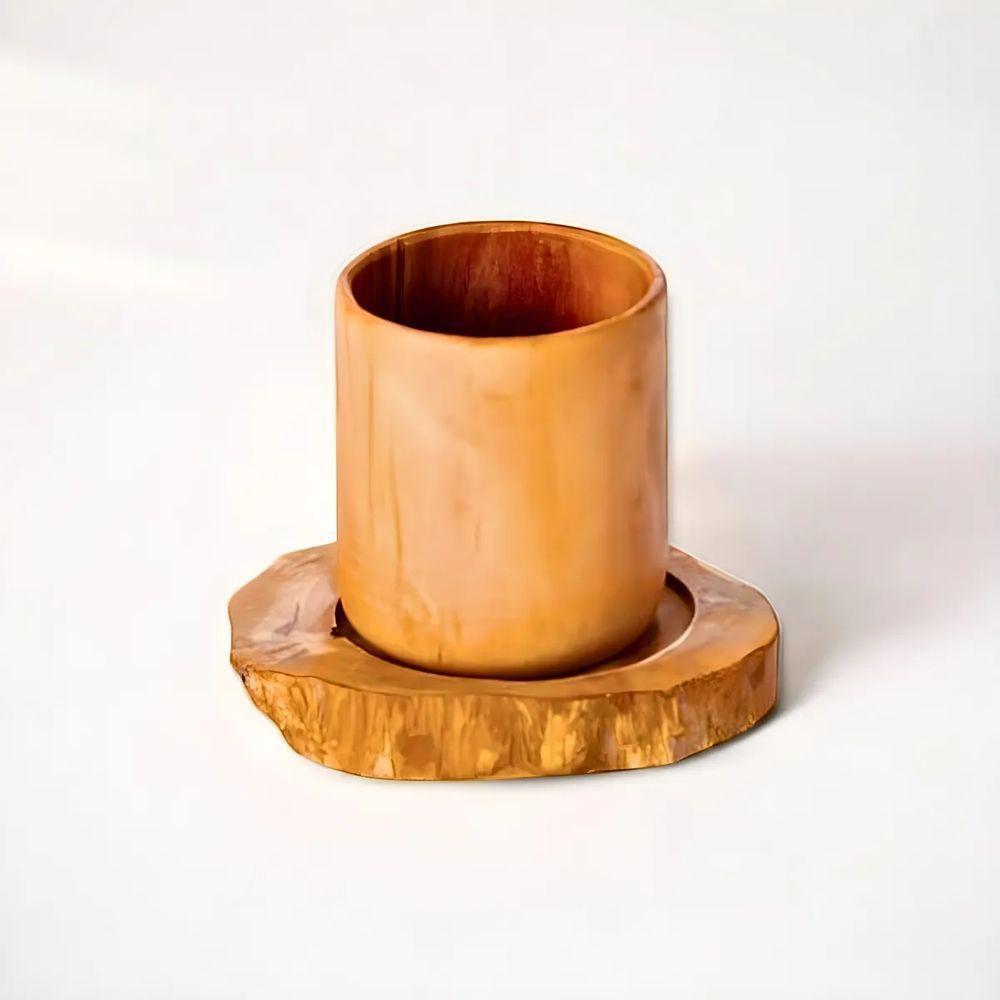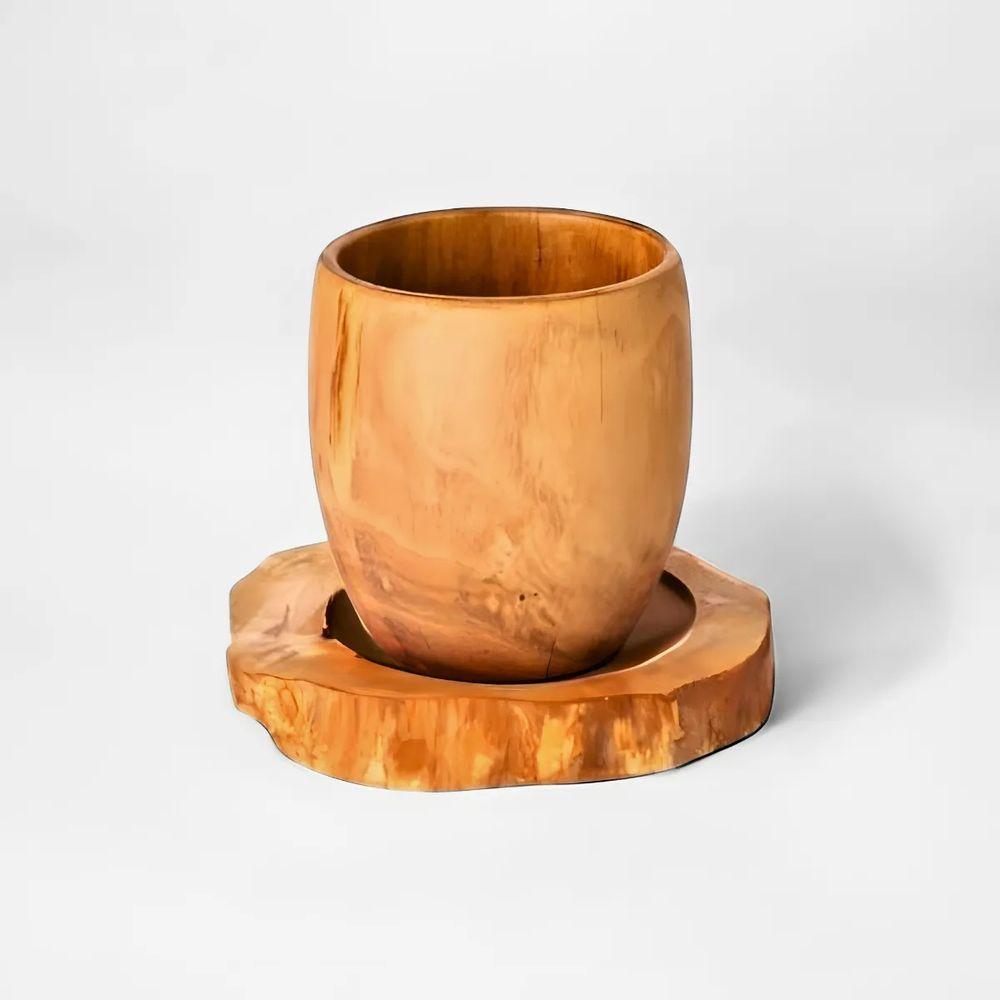 Copo Rústico Personalizado De Madeira Com Pires Rústico 80mlCaracterísticas do Produto:- Material: Fabricado em madeira de alta qualidade, o copo é modelado com precisão, mantendo um equilíbrio entre durabilidade e estética.- Acabamento Hidrorepelente: O copo é tratado com acabamento hidrorepelente, protegendo a madeira contra a absorção de líquidos, mantendo a integridade do produto por mais tempo.- Impermeabilizado: O copo é impermeabilizado para garantir que a madeira resista a líquidos, preservando sua aparência e funcionalidade em usos repetidos.- Origem Rastreável: A madeira utilizada é de origem rastreável, garantindo que o produto seja sustentável e proveniente de fontes responsáveis.- Capacidade: O copo tem capacidade para 80ml, tamanho ideal para servir pequenas porções de café, chá ou outras bebidas quentes.Design e Estilo:- Formato Modelado: O copo possui um design único, com a base mais estreita, o que o torna não apenas funcional, mas também uma peça decorativa. Perfeito para momentos especiais como um fim de tarde tranquilo ou uma conversa com chá.- Pires Rústico: O copo é acompanhado por um pires rústico, também feito de madeira e personalizado conforme as técnicas tradicionais do moldador.- Abertura Circular do Pires: O pires apresenta uma abertura circular projetada de forma precisa, oferecendo um apoio perfeito para o copo, além de adicionar um charme especial ao conjunto.- Acabamento Rústico: Tanto o copo quanto o pires possuem acabamentos rústicos que conferem um toque natural e autêntico, ideal para quem aprecia o estilo simples e elegante.Benefícios e Características Adicionais:- Estilo e Funcionalidade: O design simples e elegante combina perfeitamente com a funcionalidade, tornando o kit adequado tanto para o uso diário quanto como peça decorativa.- Versatilidade: Além de ser perfeito para cafés e chás, o conjunto pode ser usado em outras ocasiões, como reuniões ou para criar um ambiente acolhedor e elegante.Kit Completo:- O conjunto de copo e pires oferece uma experiência única, reunindo design, sustentabilidade e praticidade. Ideal para quem aprecia materiais naturais, produtos personalizados e o charme do estilo rústico.Este kit exclusivo de copo e pires de madeira é perfeito para momentos de descontração, encontros especiais e como uma peça decorativa em qualquer ambiente. Sua origem rastreável, personalização e acabamento impecável fazem dele uma escolha excepcional para quem valoriza qualidade e sustentabilidade.Alguns produtos podem apresentar variações na tonalidade da cor, detalhes e características menores, mas isso não afeta a funcionalidade ou a troca do item.