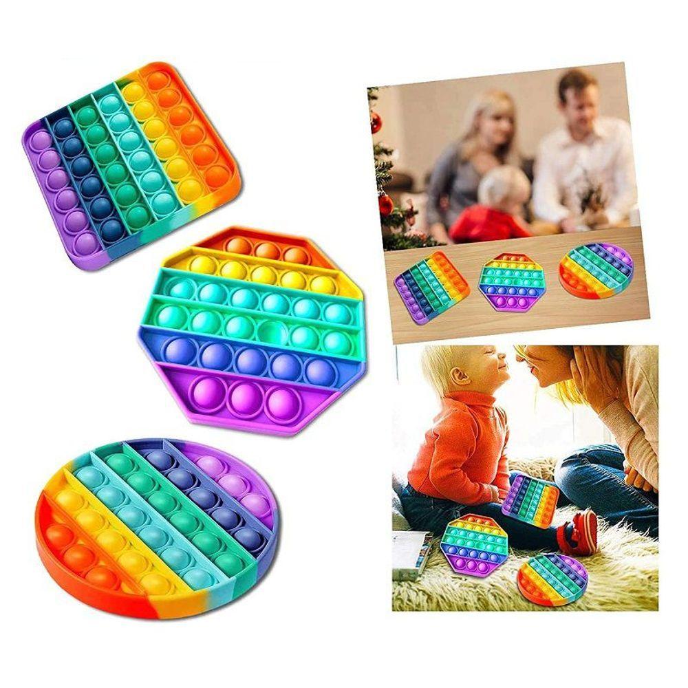 Pop It Fidget Toys Brinquedo Anti Stress Sensorial ColoridoPop It Fidget Toys Brinquedo Anti Stress Sensorial ColoridoDescriçãoAdequado para crianças, adultos, idosos e pessoas com necessidades especiais.É super simples e rápido para começar.Raciocínio lógico, capacidade de planejamento, prevenção da degeneração cerebral.Exercícios de 2 minutos para o aquecimento do cérebro.Portátil, a qualquer hora, em qualquer lugar, super leve, sem acessórios.Especificações do Produto:Modelo: Forma de Silicone AntiestresseForma: Quadrado, Circulo e Hexágono (envio aleatório conforme disponibilidade em estoque)Item Inclusos:1 Pop It Fidget Toys