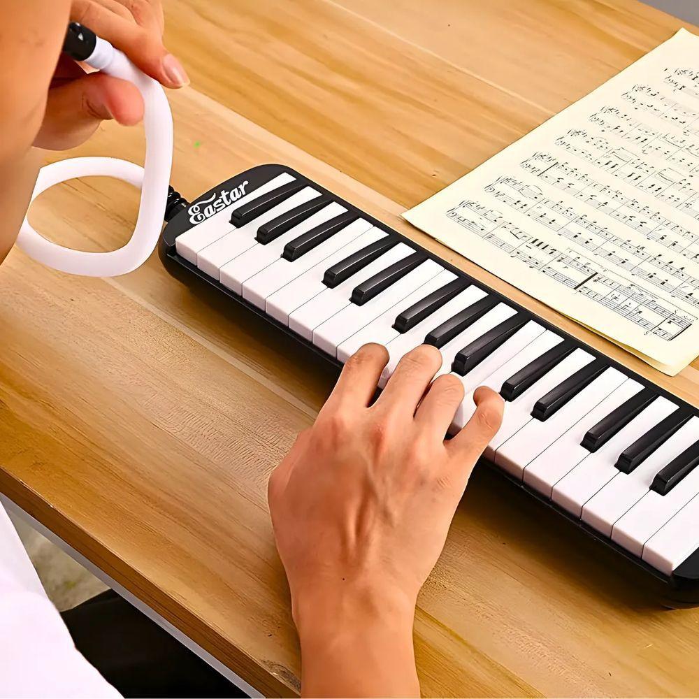 Escaleta Melódica Preta 32 TeclasDesempenho de Qualidade:Som claro e harmonioso, ideal para estudantes e músicos iniciantes. Garantia de uma boa experiência sonora.- Design para Iniciantes: Com 32 teclas, facilita a aprendizagem e prática, perfeito para iniciantes e crianças. Compacta e fácil de manusear.- Construção Durável: Feita de ABS, resistente a impactos e arranhões, garantindo longa durabilidade e qualidade.- Versatilidade Musical: Ideal para diversos estilos musicais, pode ser usada em apresentações solo ou em grupo, com excelente integração com outros instrumentos.- Material Resistente: Fabricada com ABS, um material robusto e ecológico, que oferece resistência ao desgaste diário.- Acessórios Inclusos: Acompanha bocal curto e longo, permitindo tocá-la com uma mão ou sobre uma mesa, conforme a preferência do usuário.- Fácil de Usar: Não necessita de eletricidade, afinação ou força física. Teclas leves e de fácil pressionamento.- Ideal para Crianças e Estudantes: Ótima para crianças em aulas de música e iniciantes, desenvolvendo habilidades musicais de forma prática.- Bolsa Protetora Inclusa: Vem com uma bolsa resistente, garantindo proteção contra poeira e danos durante o transporte.Especificações Técnicas:- Cor: Preto- Teclas: 32 teclas estilo piano- Acessórios: Bocal curto, bocal longo, bolsa- Material: ABS resistente- Uso: Iniciantes e estudantes- Características Principais:- Teclas fáceis de tocar e aprender.- Design prático para tocar com uma mão.- Opção de bocal longo para tocar sobre a mesa.- Bolsa para transporte e proteção.- Som suave, ideal para solos e apresentações.Conteúdo da Embalagem:- 1 Melódica- 1 Bocal curto- 1 Bocal longo- 1 Bolsa de transporteIdeal para quem busca um instrumento prático, durável e de fácil aprendizado.Alguns produtos podem apresentar variações na tonalidade da cor, detalhes e características menores, mas isso não afeta a funcionalidade ou a troca do item.