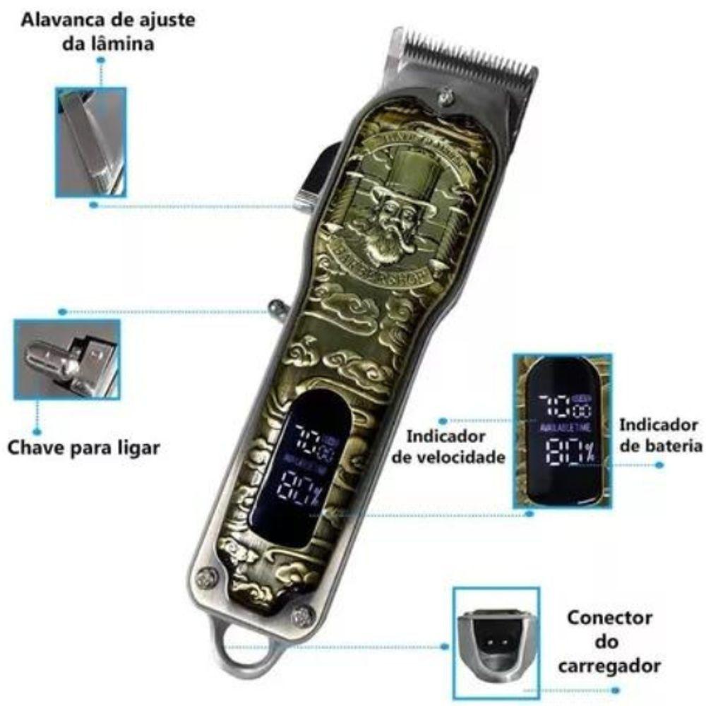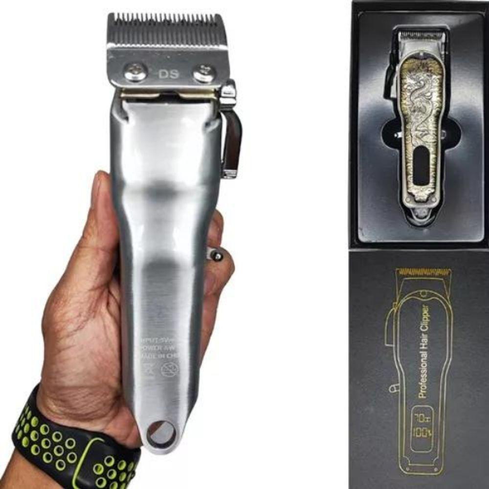 Maquina De Acabamento Cabelo Barba ProfissionalMáquina de Acabamento Profissional Modelo Premium + 8 PentesEleva a qualidade do atendimento com a DS, uma máquina de acabamento projetada para superar as expectativas e se destacar.- DURABILIDADE ACENTUADA: Fabricada com material de alta qualidade, a DS é resistente ao desgaste e promete uma longa vida útil, livre de ferrugem.- BATERIA DE ALTO DESEMPENHO: Com a DS, a bateria dura mais, permitindo que você se concentre nos cortes.- CORTE PRECISO: Menos ruído, mais eficiência. A DS garante um acabamento mais rente, proporcionando um resultado que os clientes vão adorar.- CONTROLE ABSOLUTO: Com seus 8 pentes limitadores, você tem domínio total sobre o comprimento, assegurando um corte personalizado para cada cliente.- DESIGN ERGONÔMICO: A textura única do design assegura um manuseio confortável e firme. Seu tamanho compacto a torna portátil, ideal para ajustes rápidos.Especificações Técnicas:- Material: Metal- Tamanho: 19x5 cm- Tensão: 100-240V- Potência: 10W- Capacidade da bateria: 2000mAh- Tempo de carregamento: 5h- Uso contínuo: até 60minItens Inclusos:- Máquina de Acabamento DS- 8 Pentes Limitadores- Escova para Limpeza- Pente para Cabelo- Óleo Lubrificante- Manual (Inglês)