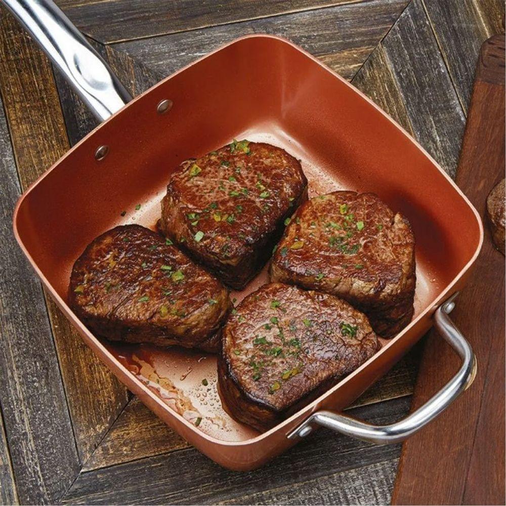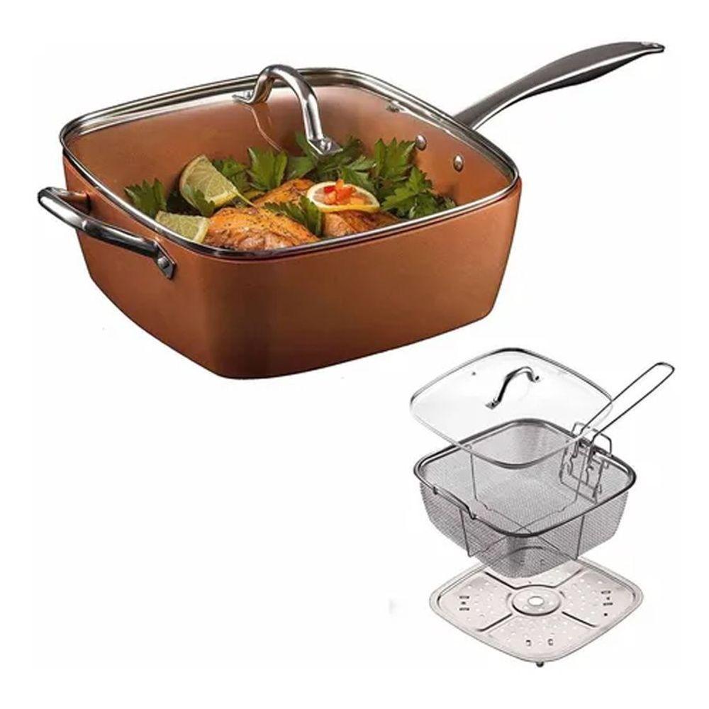 Panela Maxchef Caçarola Antiaderente 24 Cm LaranjaPanela Maxchef Caçarola Antiaderente 24 Cm Laranja Descrição: Vai se tornar o seu novo prato de cozimento favorito, assadeira, panela de arroz, vapor, pote de estoque e wok. A ferramenta de cozinha mais incrível. Este conjunto de utensílios de cozinha, batatas fritas, grelos, chucrutes, vapor e braizes. Superfície de revestimento: fornece liberação de alimentos sem esforço e permite uma limpeza fácil. Cozinhar sem a necessidade de manteiga ou óleo. Panela resistente ao calor até 800 graus. Forno e máquina de lavar louça cofre. Especificações/Características do Produto: - Material: Alumínio; - Cor: cobre; - Tamanho: 51,5 x 24,7 x 9,2 cm - Camada dupla de revestimento cerâmico polido; Revestimento cerâmico antiaderente da camada; - Núcleo de alumínio para a condutibilidade térmica a melhor e mesmo a distribuição térmica; - Revestimento exterior de alta temperatura da camada exterior; - Base de indução de aço inoxidável para aquecimento mais rápido e retenção de calor; - Elegante e bonito; - Portátil e compacto; - Material superior, toque delicado. Itens Inclusos: - Panela; - Rack de vapor/assado; - Tampa de vidro temperado; - 4.5 quart cooper quadrado panela com duplo despeje bicos.