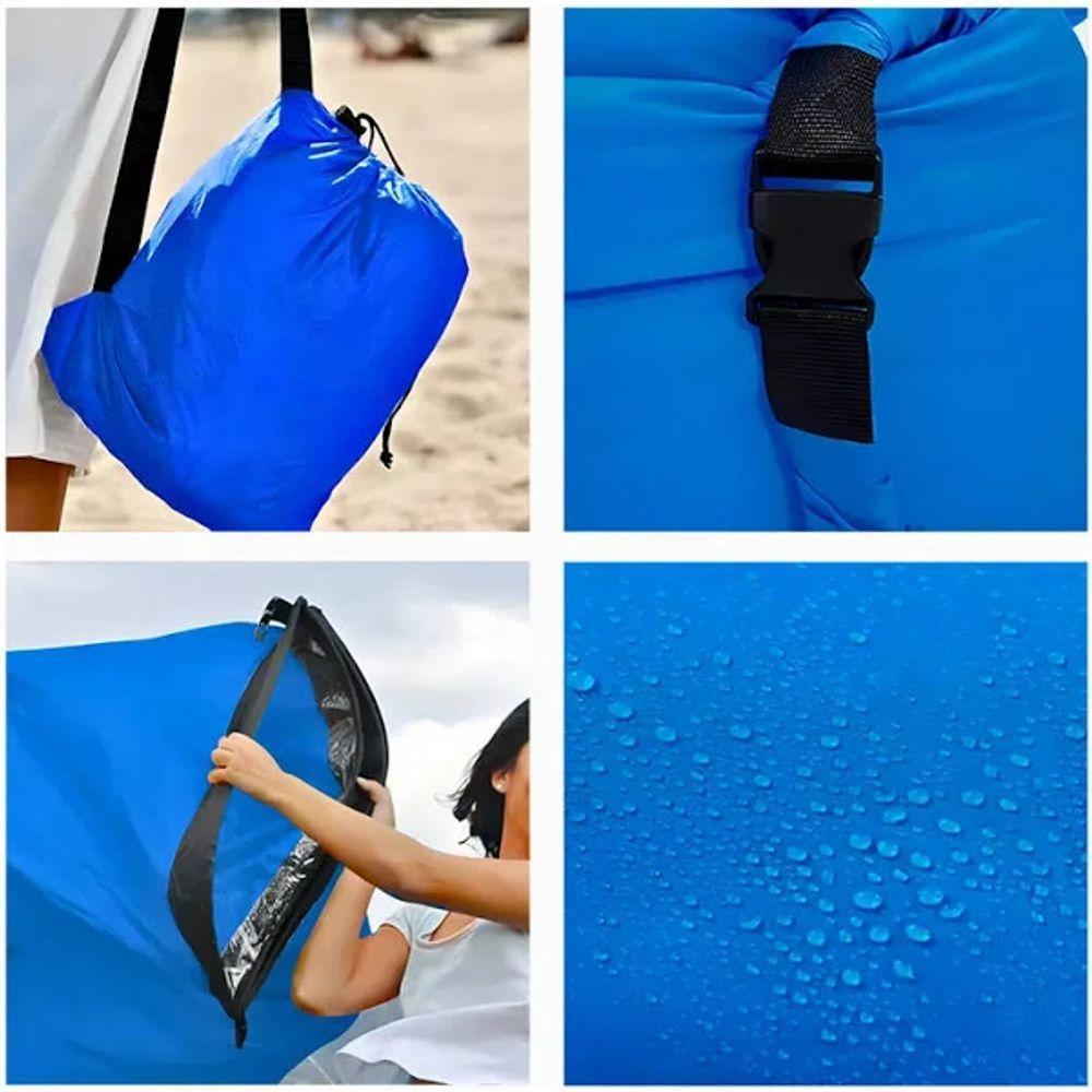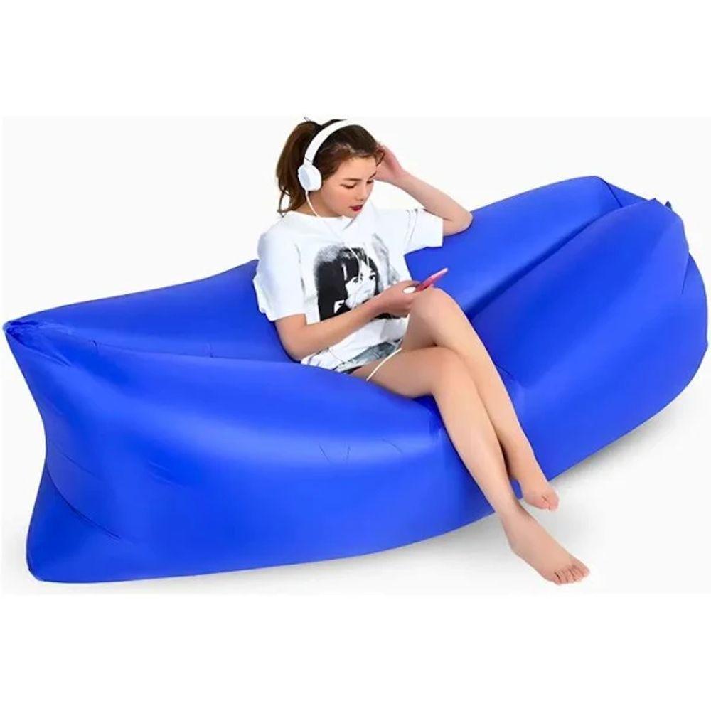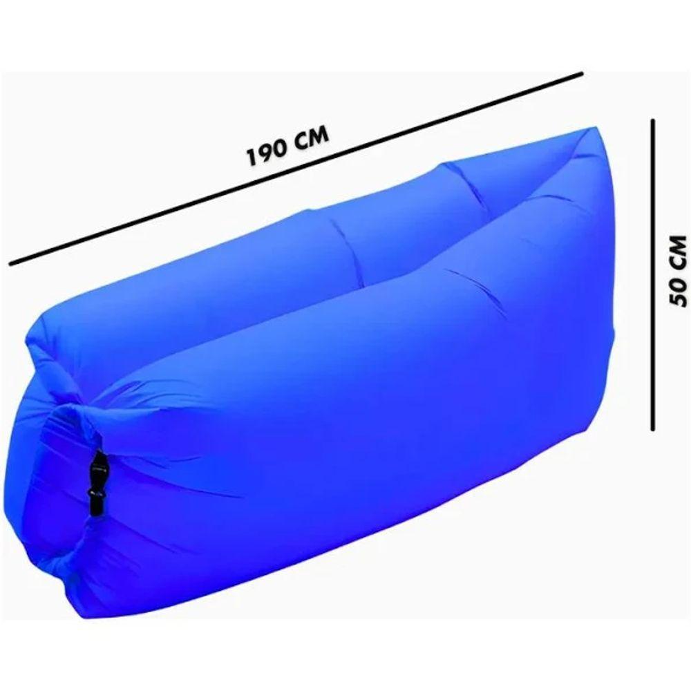 Sofá Inflável De Ar Portátil Puff Impermeável Praia (azul)O Sofá Inflável de Ar Portátil Puff Impermeável é a solução perfeita para quem busca conforto e praticidade em momentos de lazer. Ideal para a praia, camping, churrascos ou até mesmo para relaxar no jardim, este sofá portátil oferece conforto ergonômico e fácil transporte. Feito com material resistente e leve, é fácil de inflar e usar, proporcionando um descanso ideal em qualquer lugar.Características:- Praticidade de Transporte: Leve e fácil de transportar, o sofá inflável pode ser dobrado e armazenado na bolsa inclusa, ocupando pouco espaço.- Fácil de Inflar: Não é necessário bomba. Basta abrir a boca do sofá para que o vento o infle automaticamente, ou siga um simples processo para inflá-lo sem vento.- Conforto Ergonômico: O encosto ergonômico garante suporte para as costas, proporcionando conforto durante o uso por longos períodos.- Versátil: Perfeito para várias ocasiões, como camping, churrascos ao ar livre, descanso na praia, à beira da piscina ou relaxamento no jardim.- Resistência e Durabilidade: Fabricado com tafetá de poliéster de alta performance, o sofá é resistente à água e adequado para uso em diferentes superfícies como grama, areia, neve e cascalho.- Tamanho Ideal: oferece espaço confortável para uma pessoa, com capacidade de suportar até 180 kg.- Impermeável: Resistente à água, ideal para uso próximo à piscina ou na praia.Especificações Técnicas:- Material: Tafetá de poliéster resistente à água- Capacidade de Peso: Até 100 kg- Ideal para: Praia, camping, churrascos, pátios e muito maisItens Inclusos:- 1 Sofá Inflável de Ar Portátil- 1 Bolsa para ArmazenamentoCuidados e Instruções:- Mantenha o sofá longe de superfícies com objetos cortantes para evitar danos.- Armazene o produto após o uso, mantendo-o limpo e seco para aumentar sua durabilidade.Com este sofá inflável, relaxar em qualquer lugar nunca foi tão fácil e confortável. Ideal para quem procura praticidade e descanso em qualquer ocasião.Alguns produtos podem apresentar variações na tonalidade da cor, detalhes e características menores, mas isso não afeta a funcionalidade ou a troca do item.